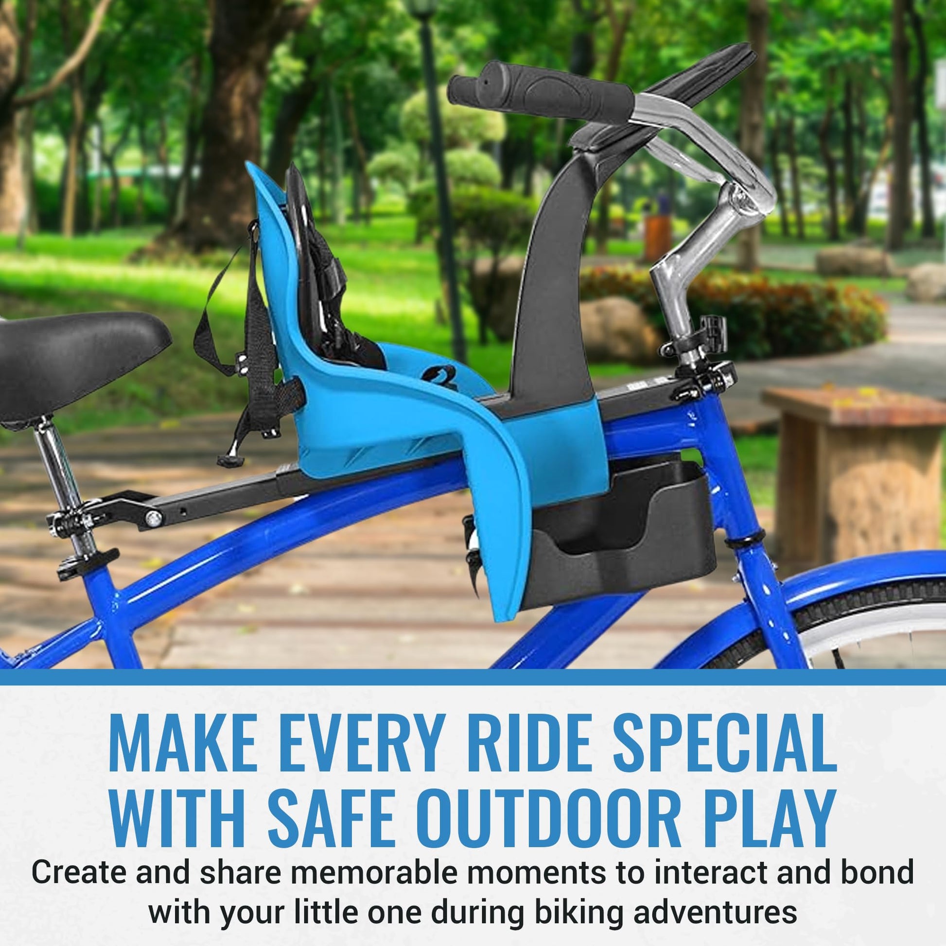 - Q: What safety features does the KaZAM Kangaroo child seat have? A: The child seat includes a seat harness, a padded front bumper, and height-adjustable foot cups for enhanced safety and comfort.