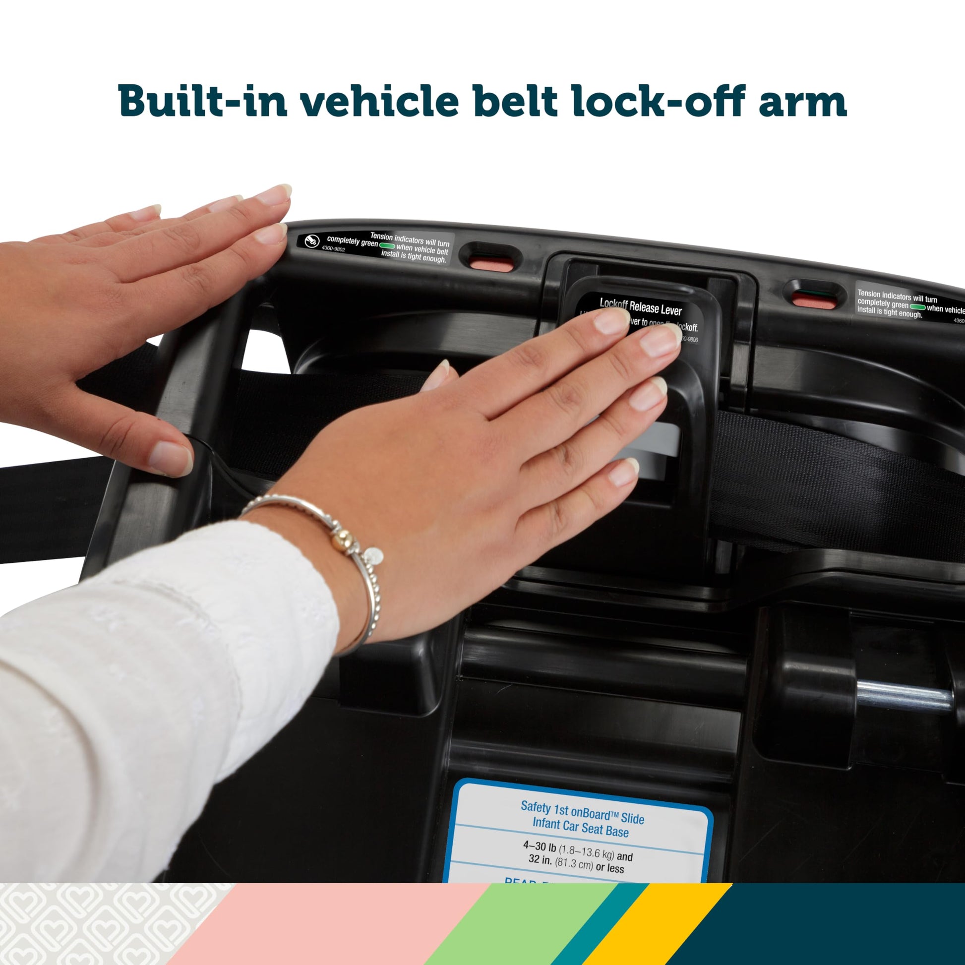 - Q: What safety features does this car seat have? A: The Safety 1st onBoard Slide DLX is rigorously crash and side-impact tested to meet safety standards and includes SecureTech red-to-green indicators to show when the base is locked in place.