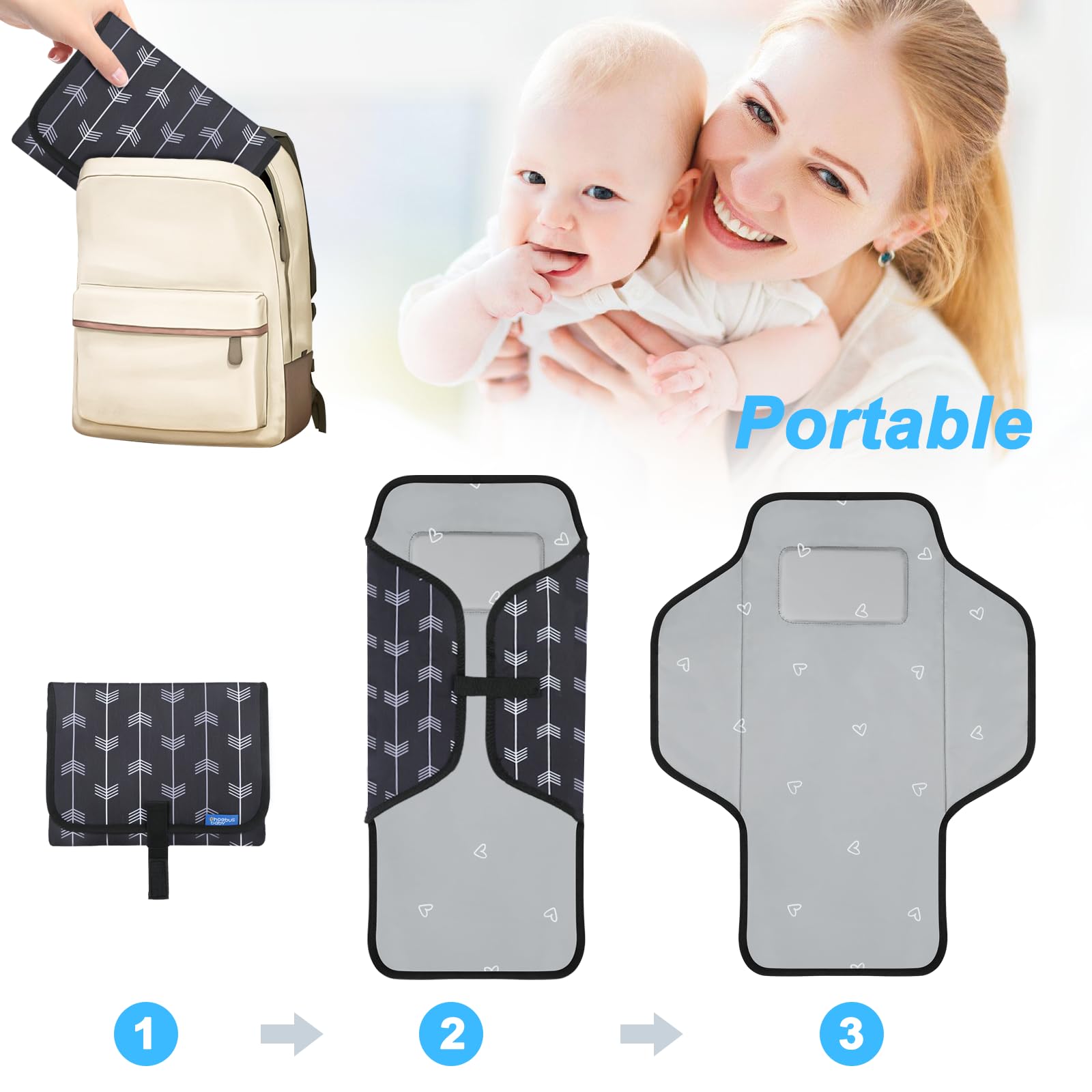 - Q: How portable is the changing pad? A: The changing pad is lightweight and compact, easily fitting into your diaper bag for convenient portability.