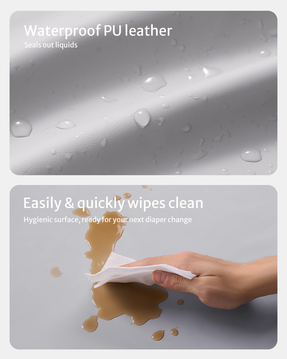- Q: What materials are used in the construction of this changing pad? A: The changing pad is made from a PU leather cover and foam padding, providing both comfort and durability.