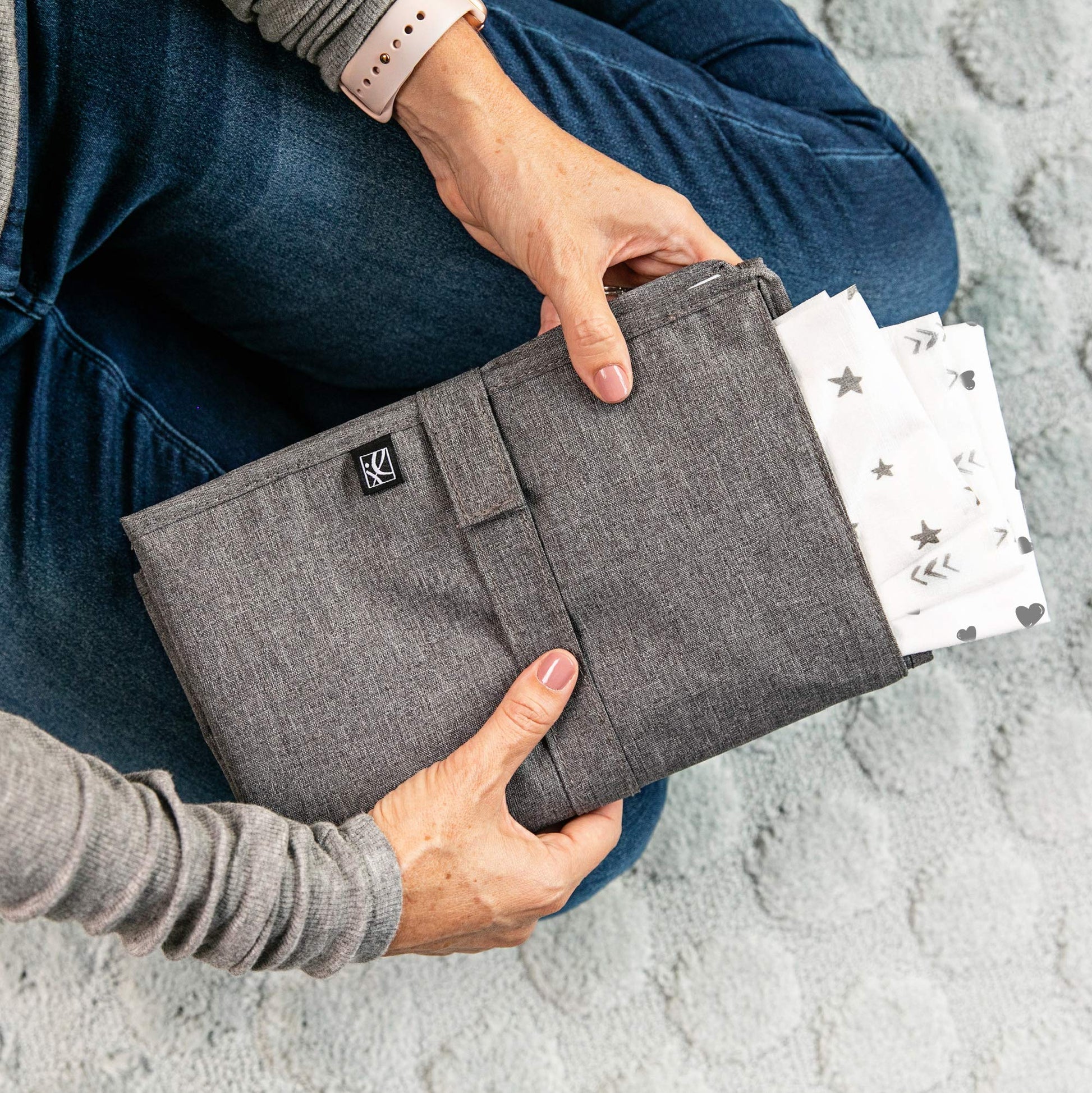 - Q: Can I organize diapers and wipes with this changing pad? A: Yes, you can attach diapers and wipes to the reusable changing pad using the exterior strap or store them in the hidden pocket for easy access.