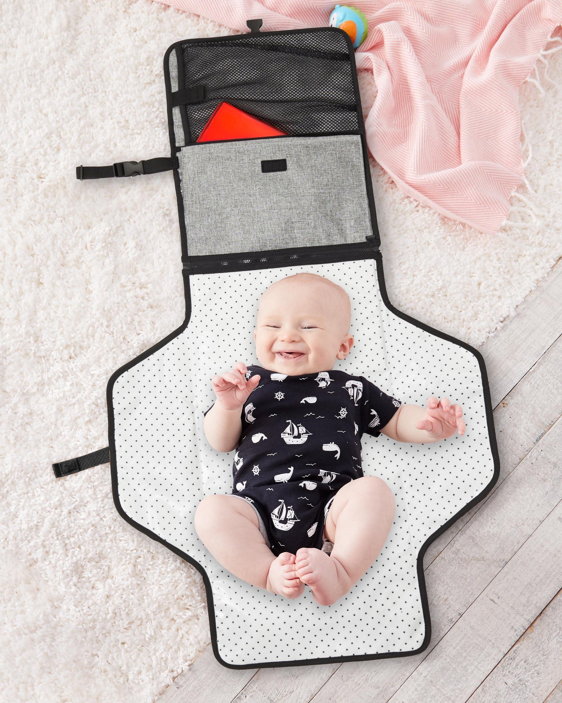 - Q: What are the dimensions of the Skip Hop Portable Baby Changing Pad when closed? A: The dimensions of the Skip Hop Portable Baby Changing Pad when closed are 11.75 inches long, 4 inches wide, and 8.25 inches high.