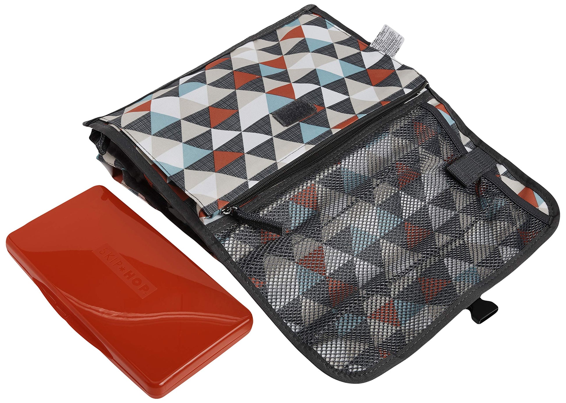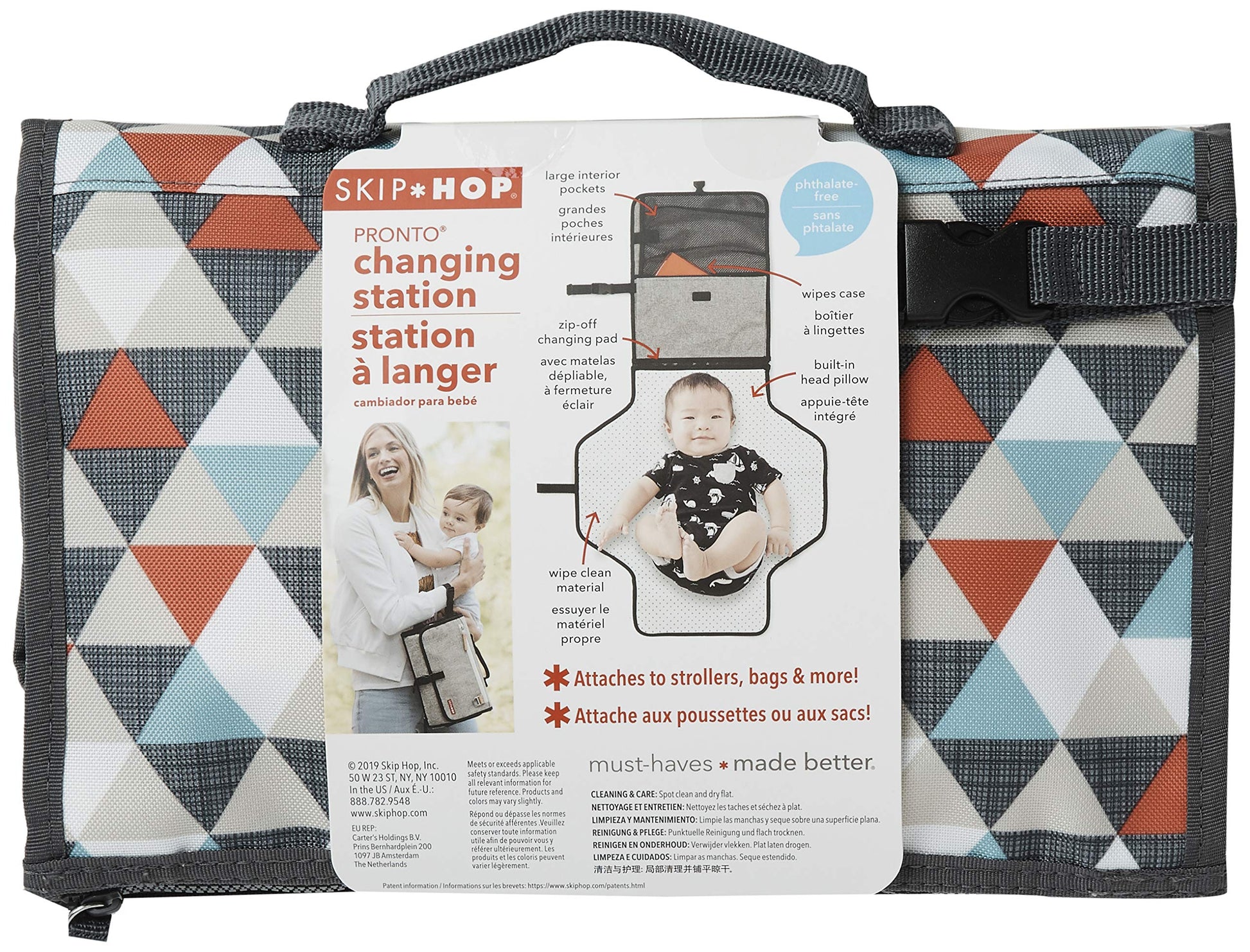 - Q: What are the dimensions of the Skip Hop Portable Baby Changing Pad when it is open? A: The changing pad measures 23.5 inches long by 21.75 inches wide.