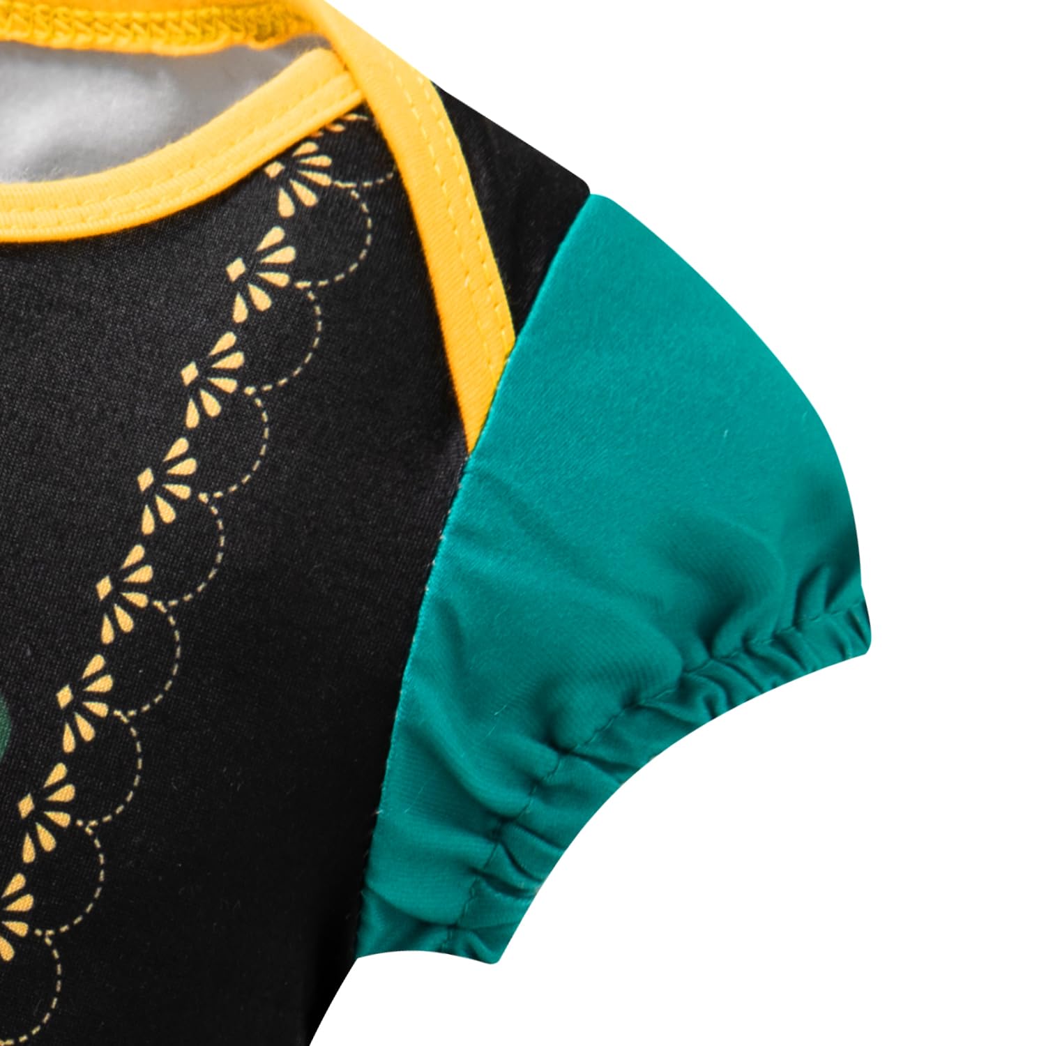 - Q: What type of design does the dress feature? A: The dress features a short sleeve princess costume design with decorative patterns, enhancing its appeal for little girls.