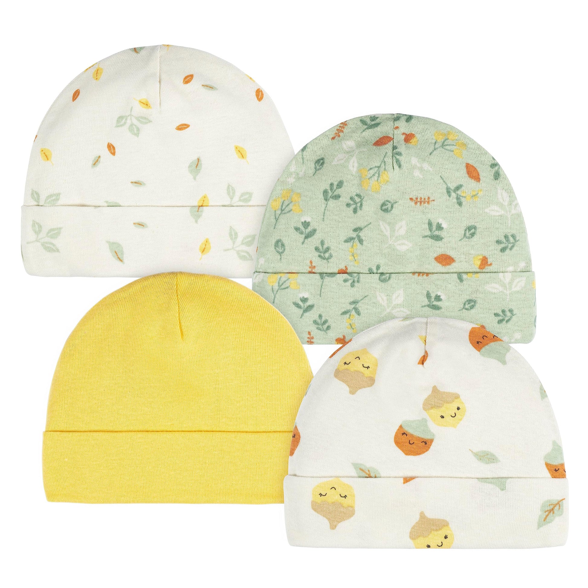 - Q: What colors are available in this gift set? A: This specific layette gift set features a yellow color scheme with acorn designs.