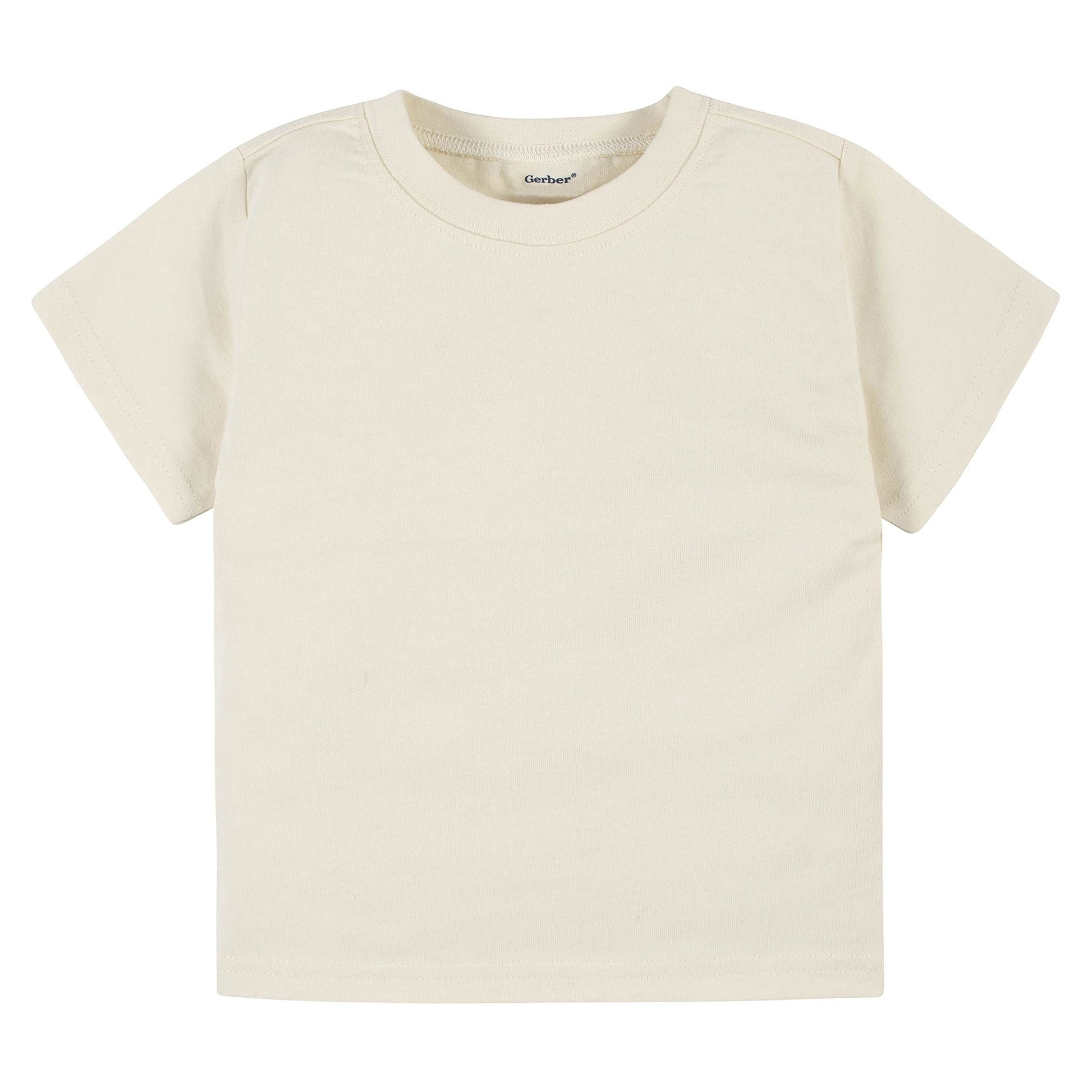 Gerber Baby Toddler 5-Pack Solid Short Sleeve T-Shirts Jersey 160 Gsm, Natural, 18 Months