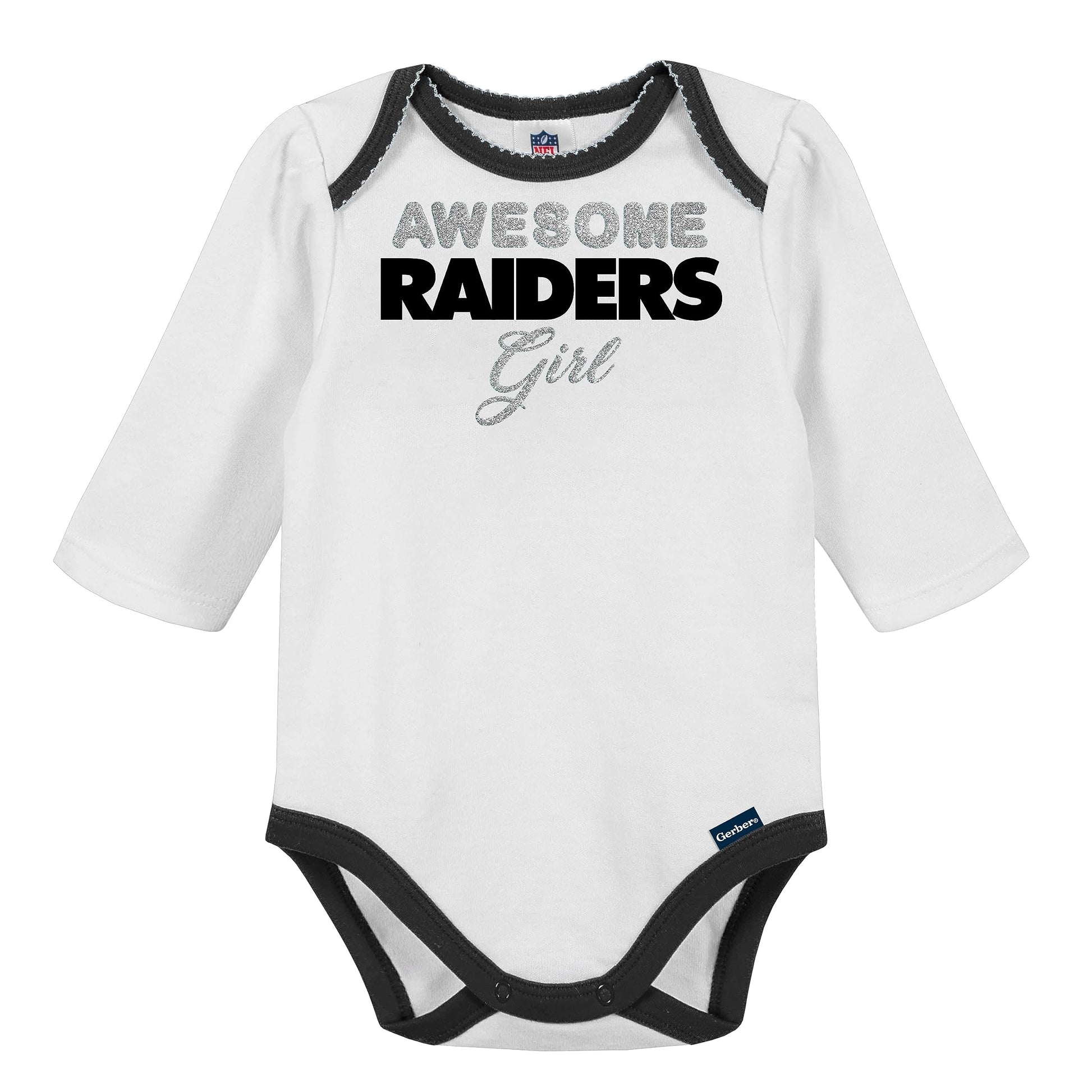 - Q: What makes this outfit suitable for NFL fans? A: The outfit features the Las Vegas Raiders team logo in glitter, allowing your baby to show off team pride.