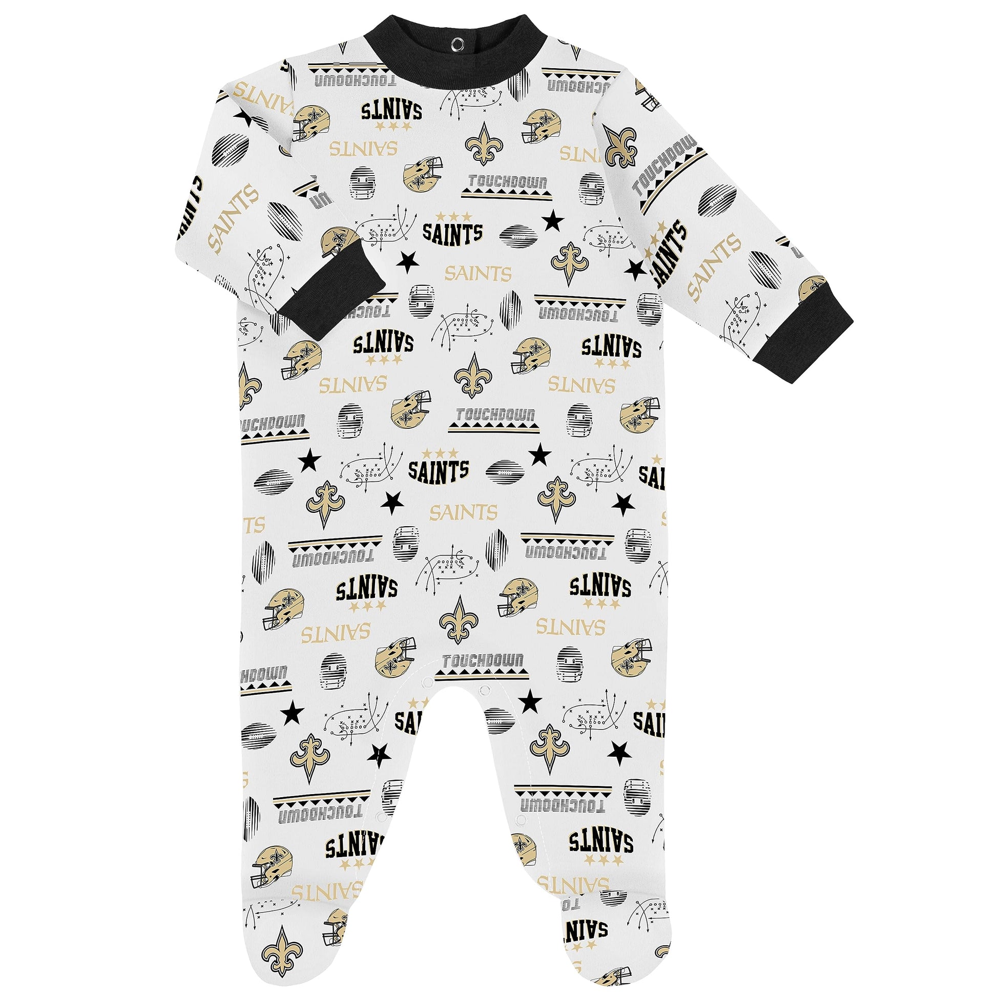 - Q: What sizes does the NFL New Orleans Saints Bodysuit Sleep n Play Footie Cap Set come in? A: The set is available in sizes for baby boys aged 3 to 6 months.