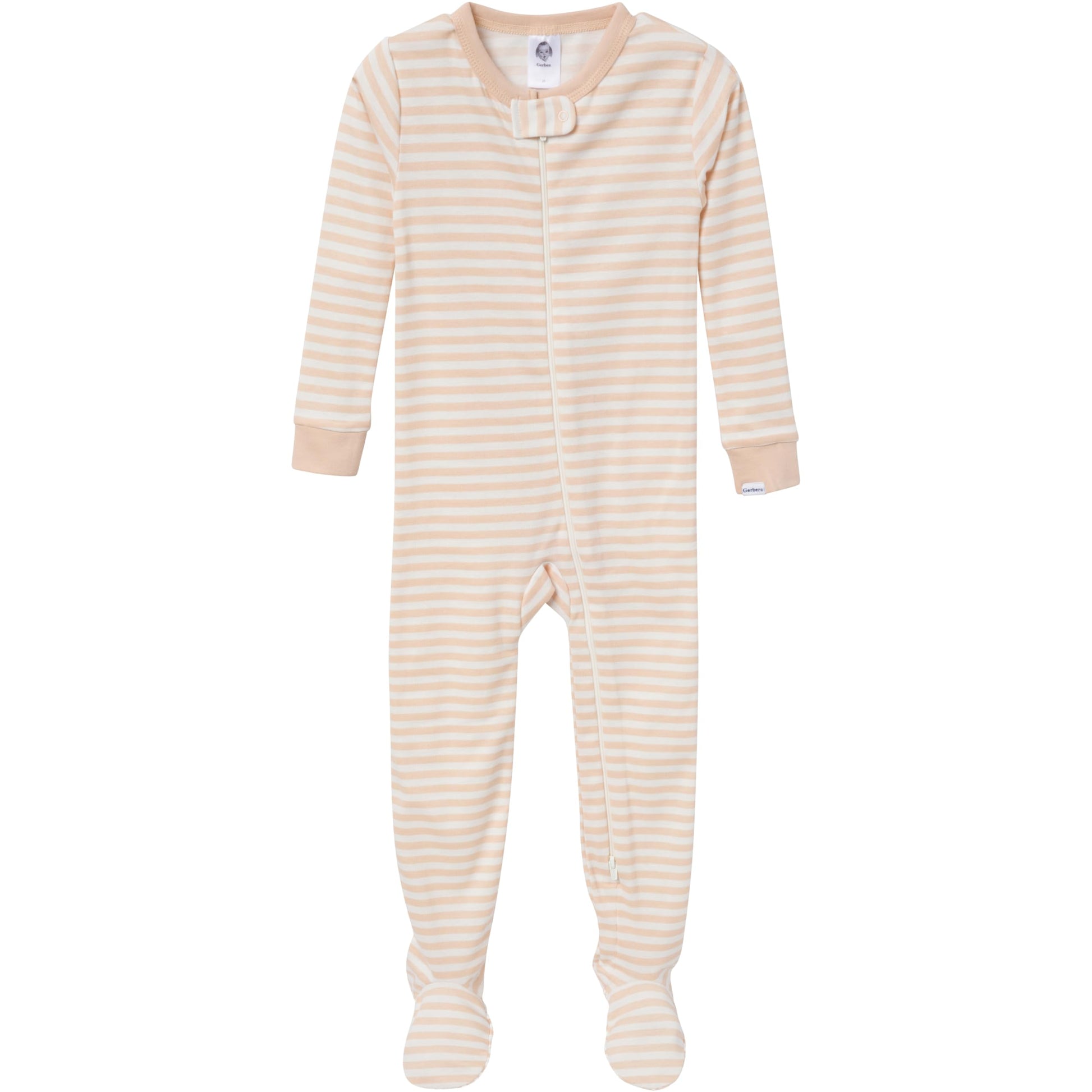 DescriptionEnsure your baby or toddler gets a good night's sleep with this 2-pack of footed pajamas, perfect for cozy comfort after a long day of play. Made primarily from soft cotton, these pajamas offer a breathable feel that helps keep your baby or toddler snug and comfortable throughout the night. The convenient two-way zipper with a neckline guard minimizes sleep disruption with simple dressing and diaper changes, while the non-skid soles provide extra traction and support for those first steps. Spandex trim at the neckline and wrists offers a flexible, secure fit, ensuring that the pajamas stay comfortably in place. Designed with a tight-fitting style for safe wear, these footed pajamas are the ideal choice for restful nights and sweet dreams.