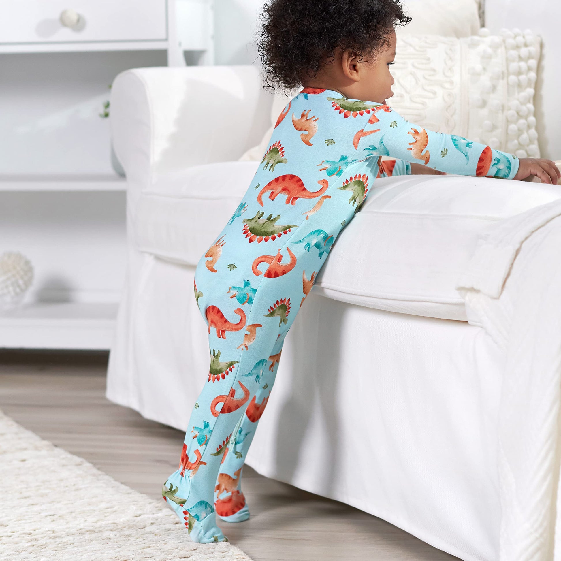 Gerber Unisex Baby Toddler Buttery Soft Snug Fit Footed Pajamas With Viscose Made From Eucalyptus, Dino, 6-9 Months