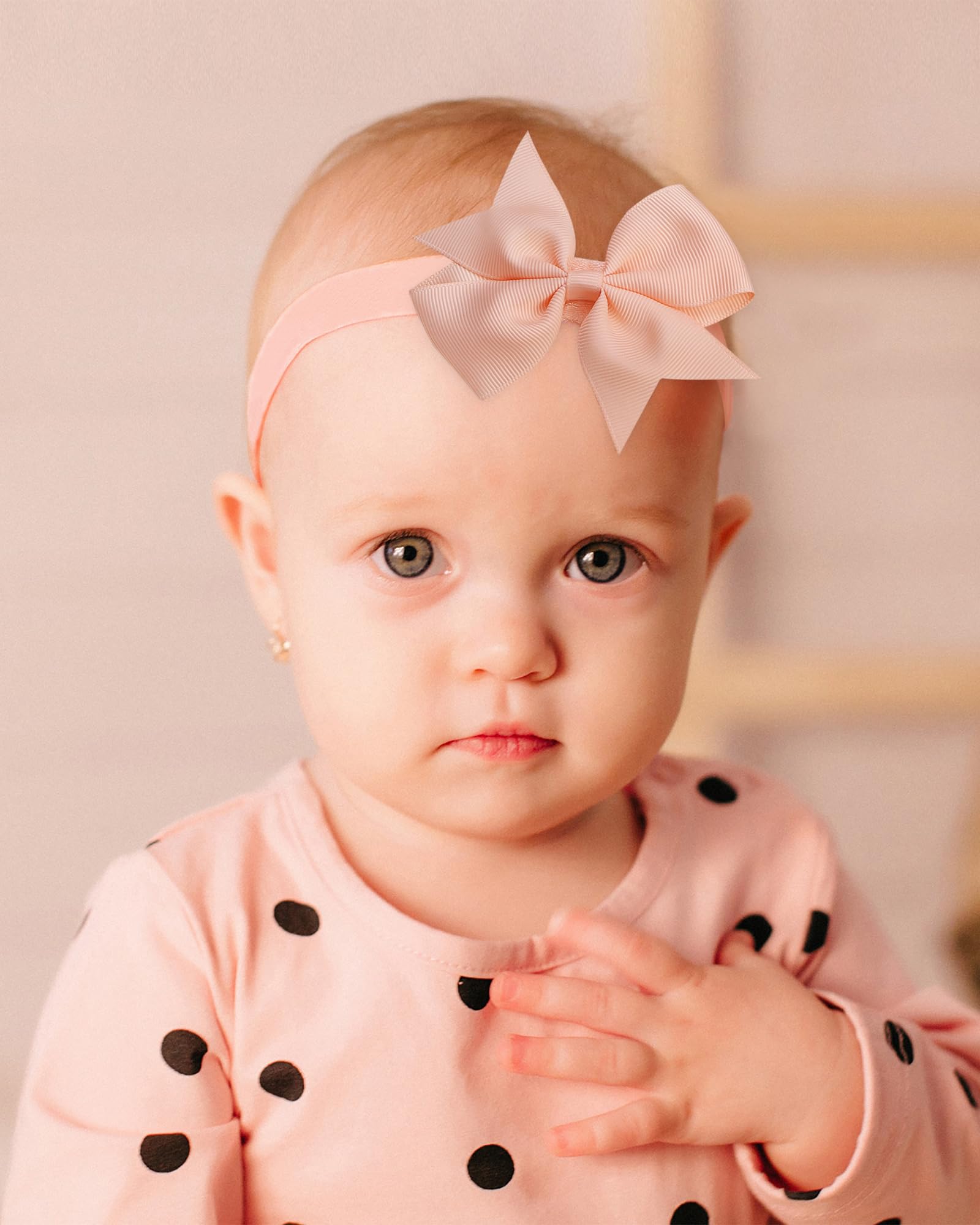 - Q: What is the size of the hair bows and headbands? A: The hair bows measure approximately 4 inches in width, and the headbands have a girth of about 14.2 inches, accommodating growing babies.