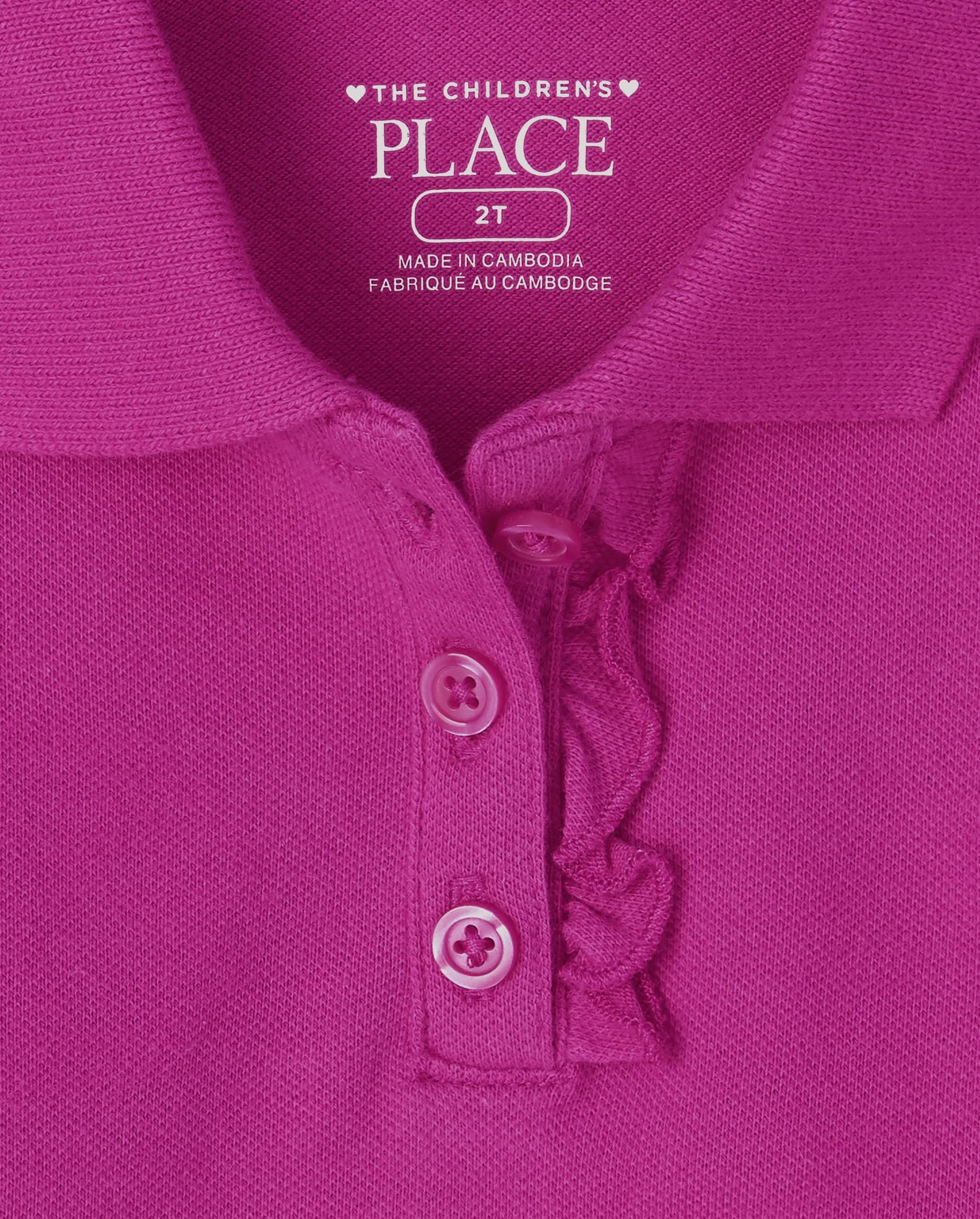 - Q: What colors are available for this polo shirt? A: This polo shirt is available in Aurora Pink, a vibrant and adorable color for young girls.
