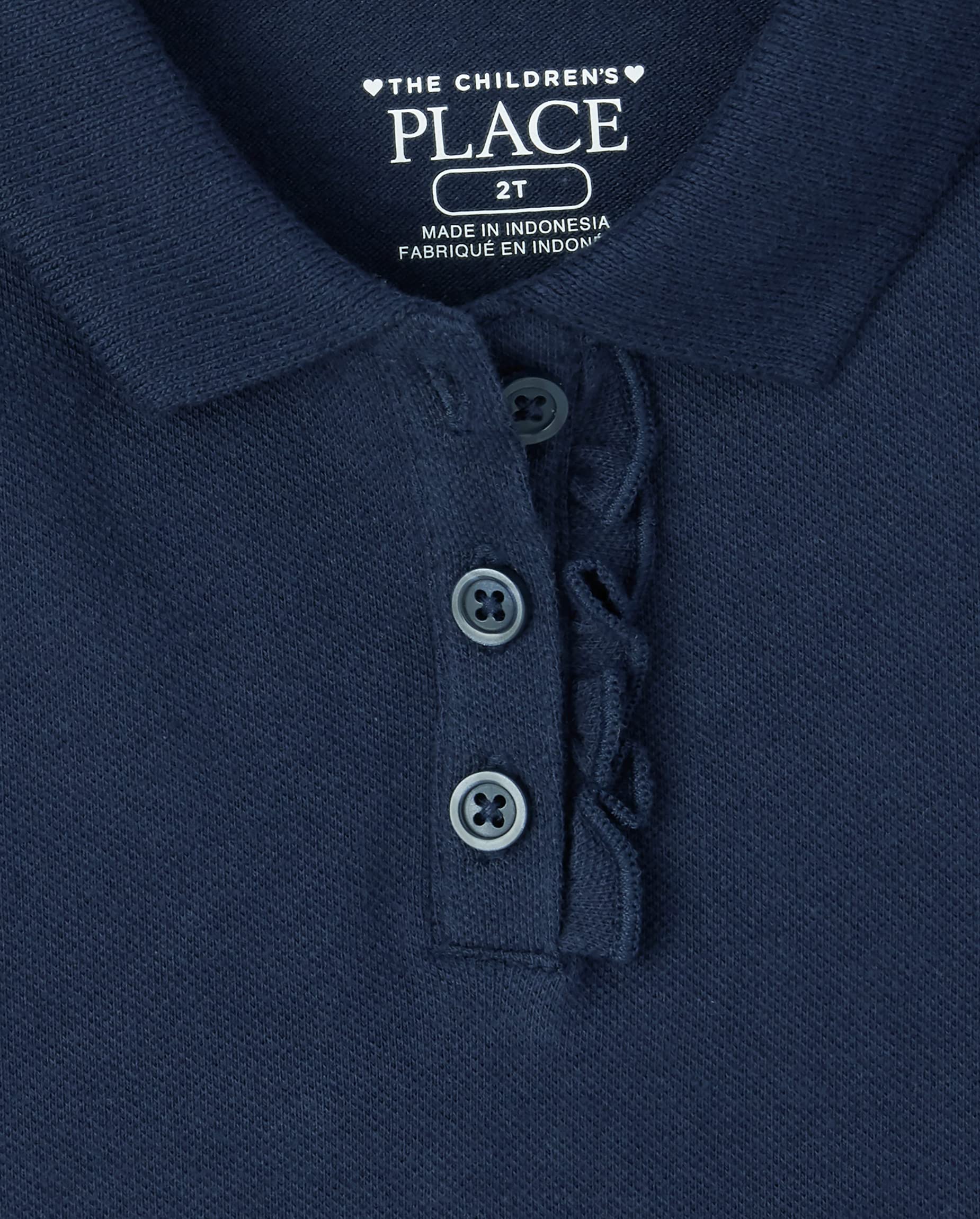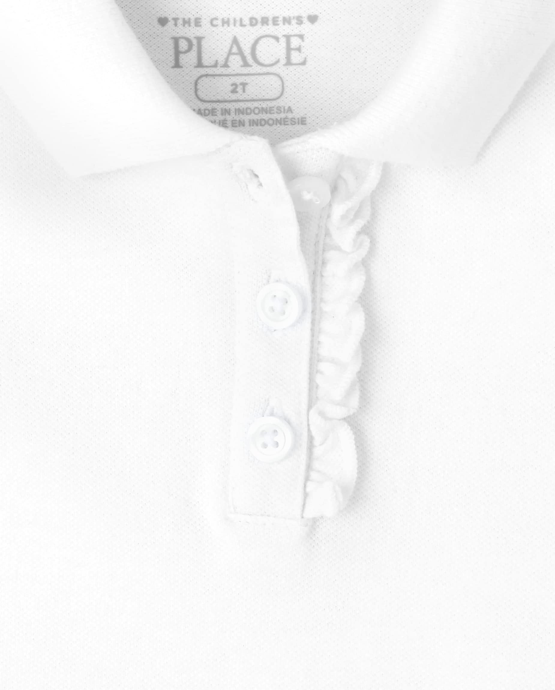 - Q: What is the material of The Children's Place Baby Girls and Toddler Girls Short Sleeve Ruffle Pique Polo? A: The polo is made from a cotton blend, providing comfort and breathability for your child.