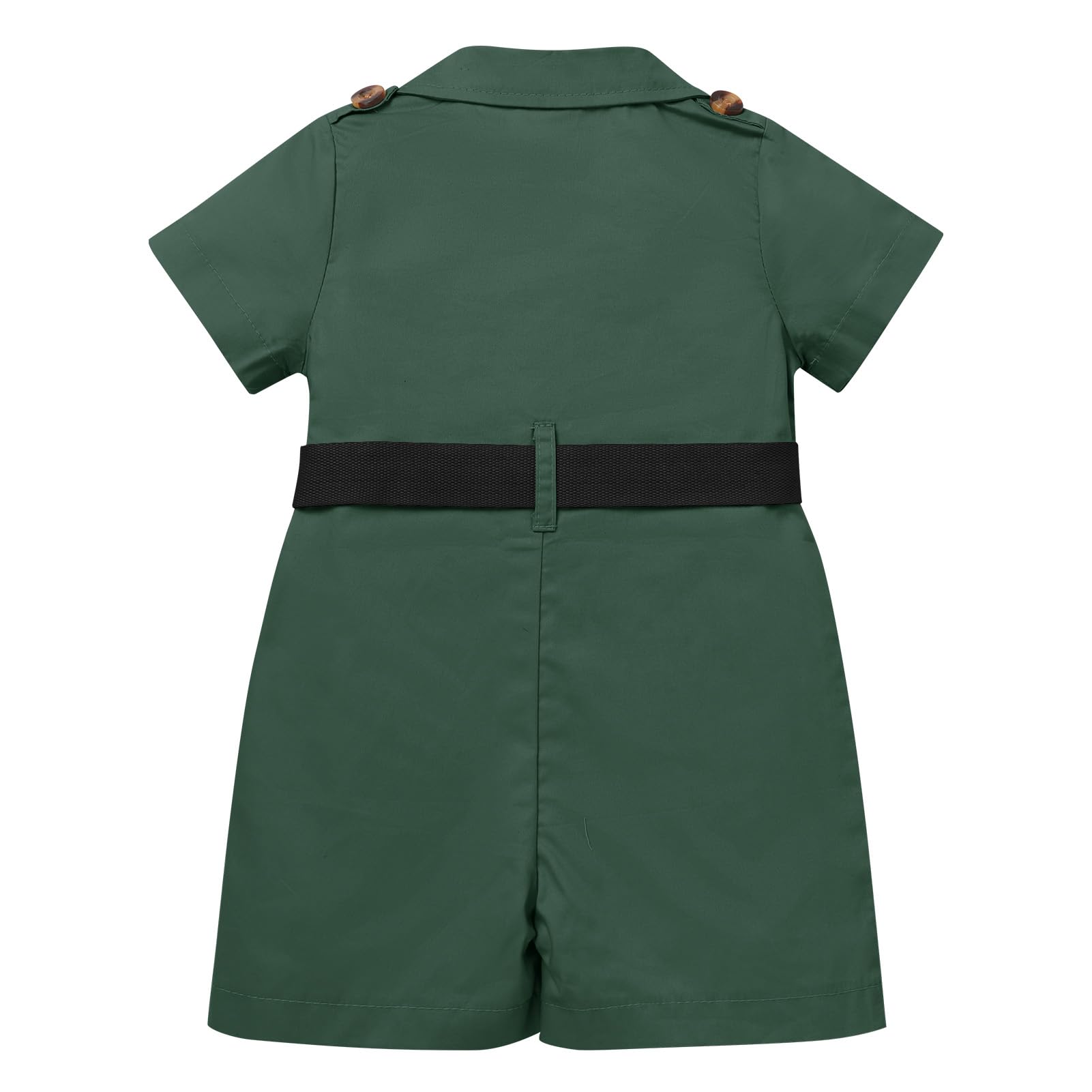 - Q: Does the outfit come with accessories? A: Yes, the outfit includes a jumpsuit, a matching belt, and a safari hat to complete the look.