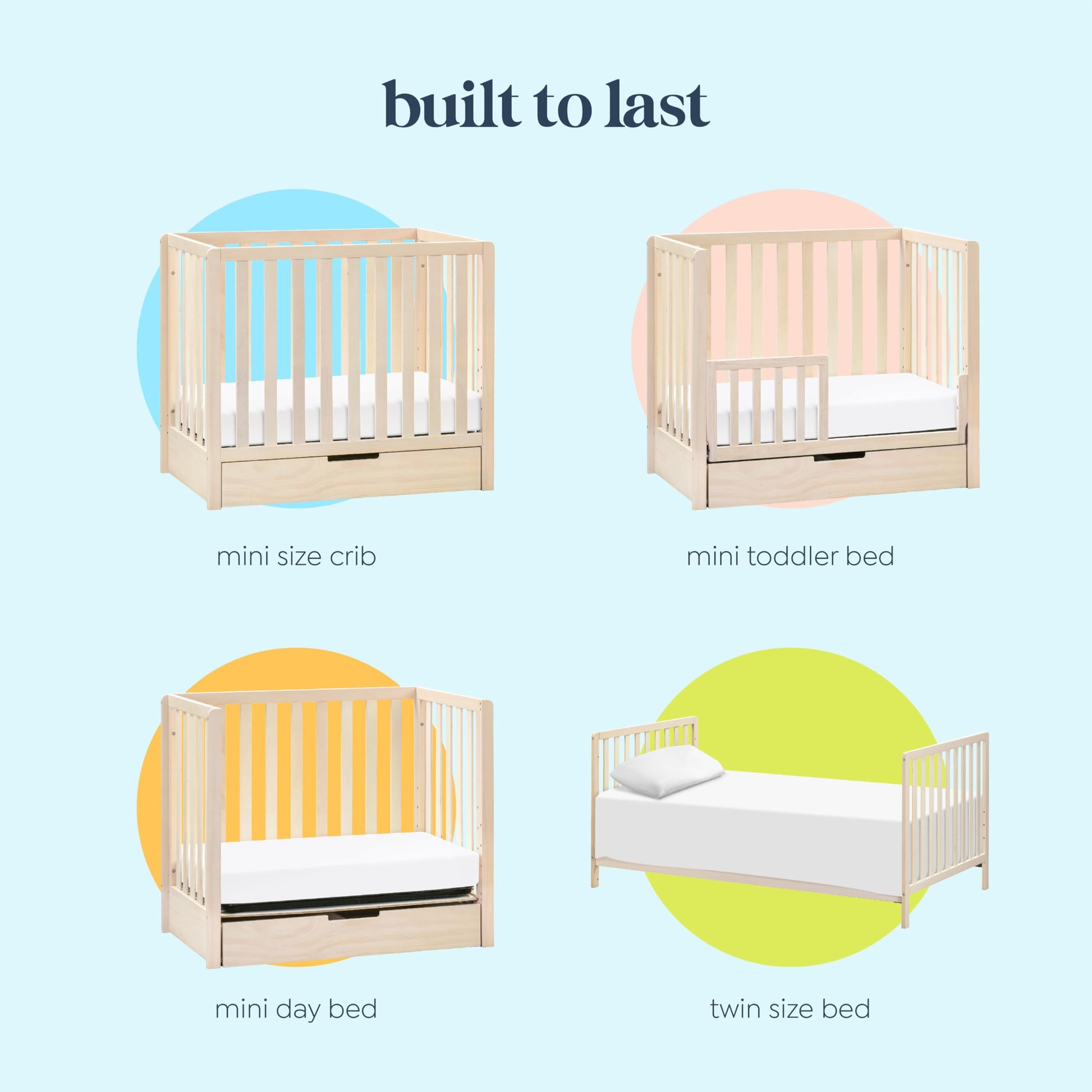 - Q: Can the crib be converted into different bed types? A: Yes, the Colby Mini Crib can convert into a mini toddler bed, a daybed, and a twin-size bed. However, the conversion kits for the toddler and twin beds are sold separately.