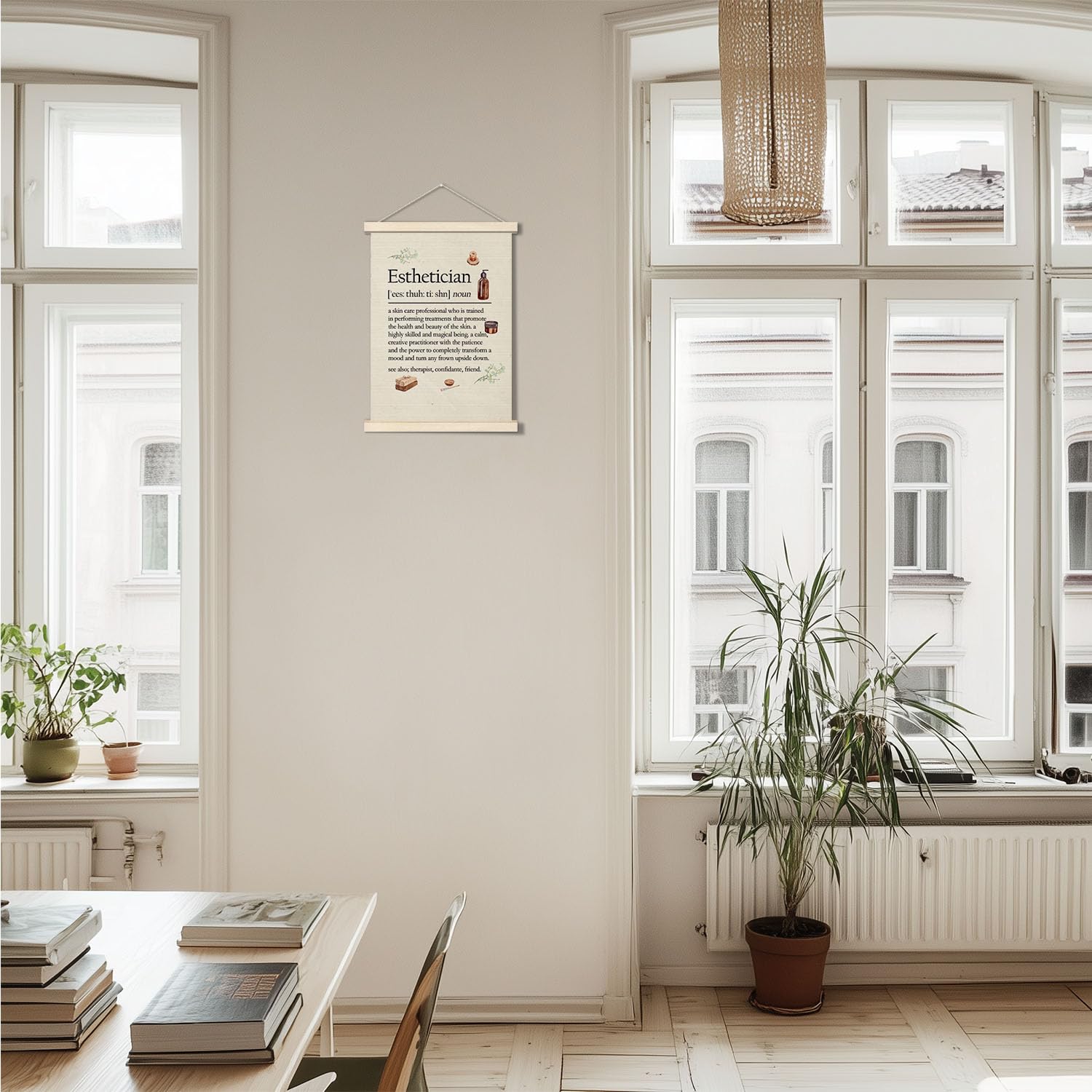 - Q: What are the dimensions of the Esthetician Hanger Poster? A: The Esthetician Hanger Poster measures 12 inches by 16 inches.