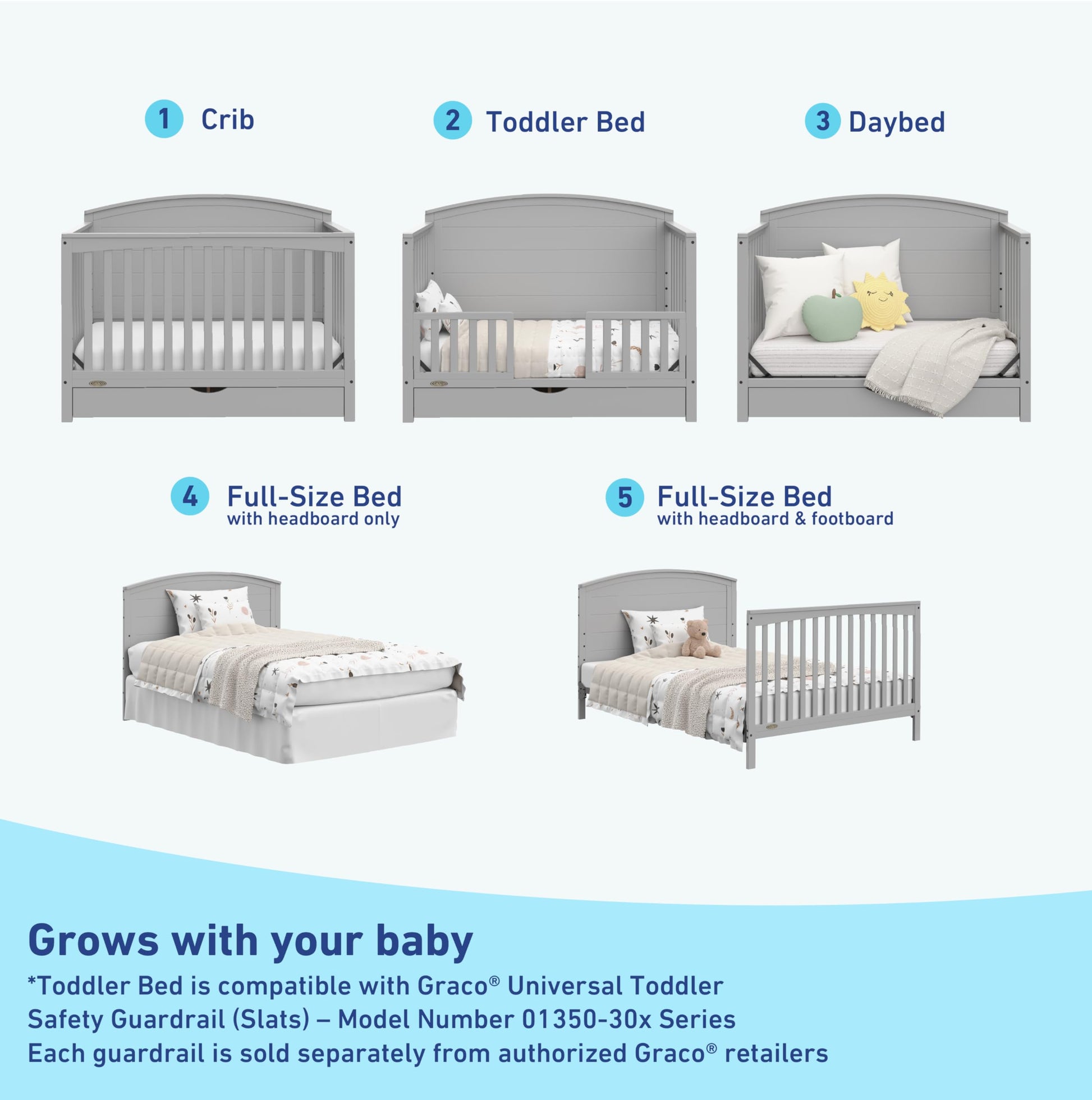 - Q: How much assembly is required for the crib? A: Some assembly is required for the Graco Bellwood 5-in-1 Convertible Crib; all necessary tools and instructions are included in the packaging.