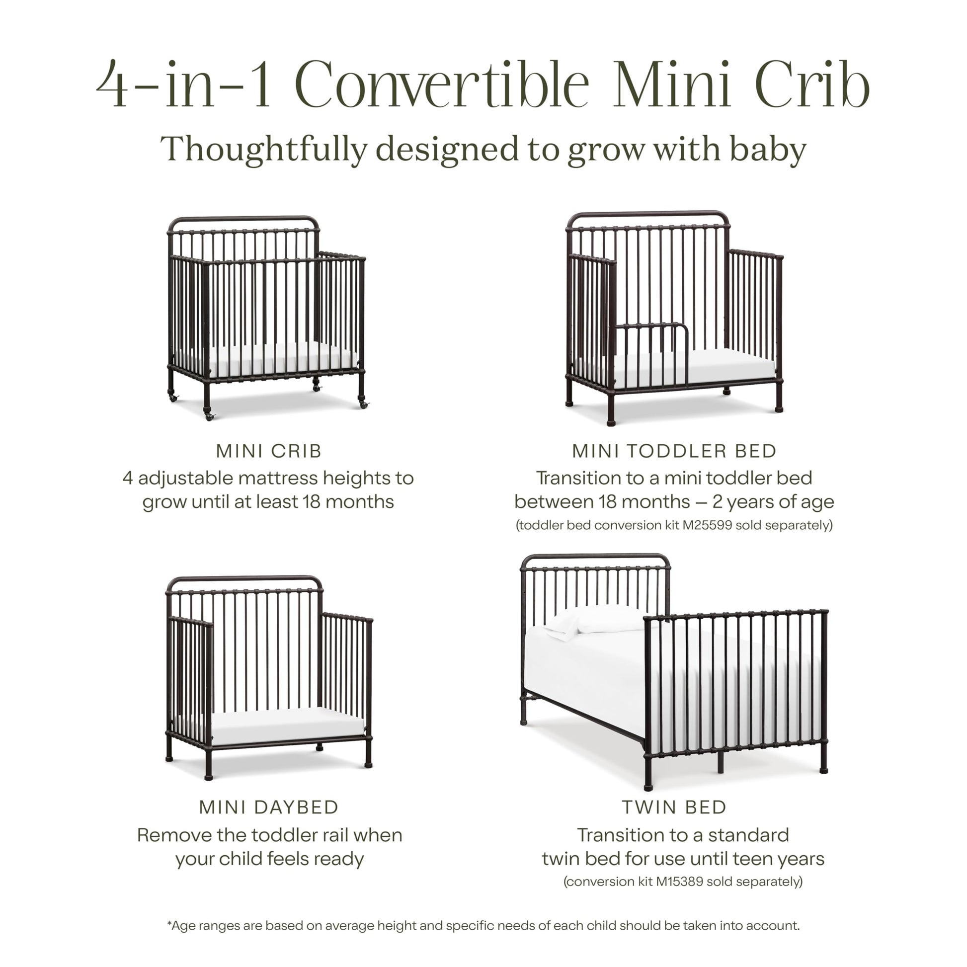- Q: What is the main feature of the NAMESAKE Winston 4-in-1 Convertible Mini Metal Crib? A: The NAMESAKE Winston 4-in-1 Convertible Mini Metal Crib can be converted into a toddler bed, daybed, and twin bed, making it a versatile option for growing families.