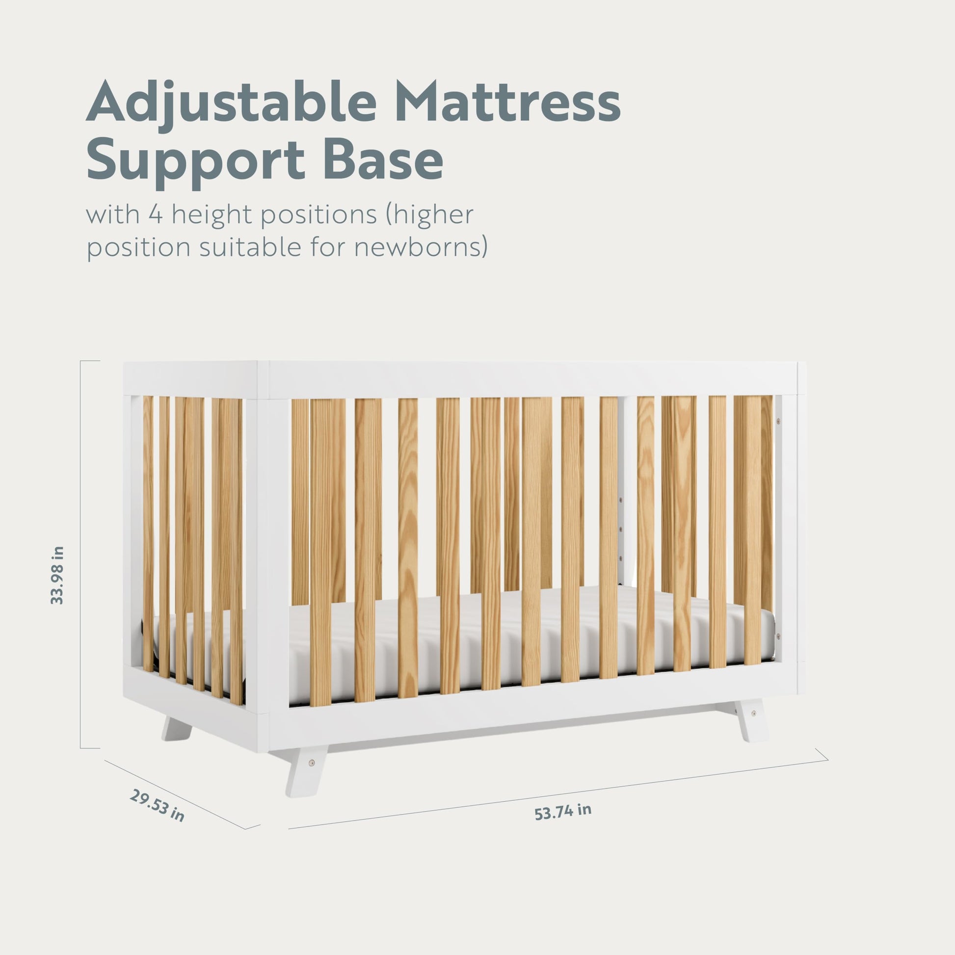 - Q: How many adjustable mattress height options does the crib offer? A: The crib features four adjustable mattress height options, including a higher position suitable for newborns.