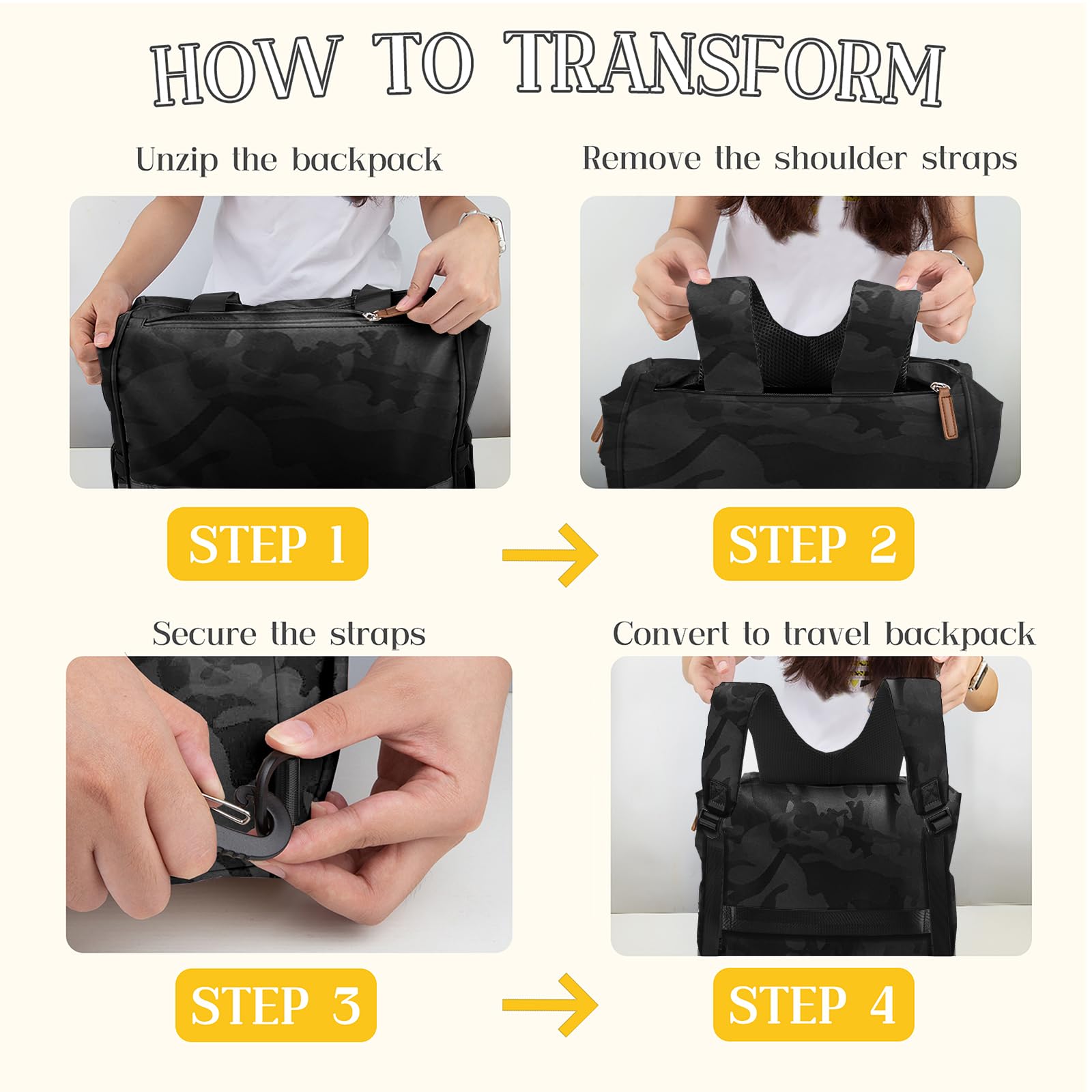 - Q: Can this bag be worn in different ways? A: Yes, the bag can be worn in four different ways: as a tote, crossbody diaper bag, backpack, or luggage bag, giving you flexibility for various situations.
