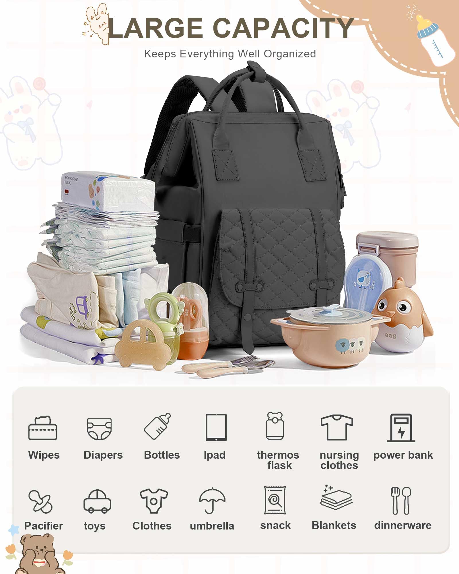 - Q: Does this diaper bag have a USB charging port? A: Yes, the diaper bag features a USB charging port, allowing you to connect a power bank to charge your phone conveniently while on the go.