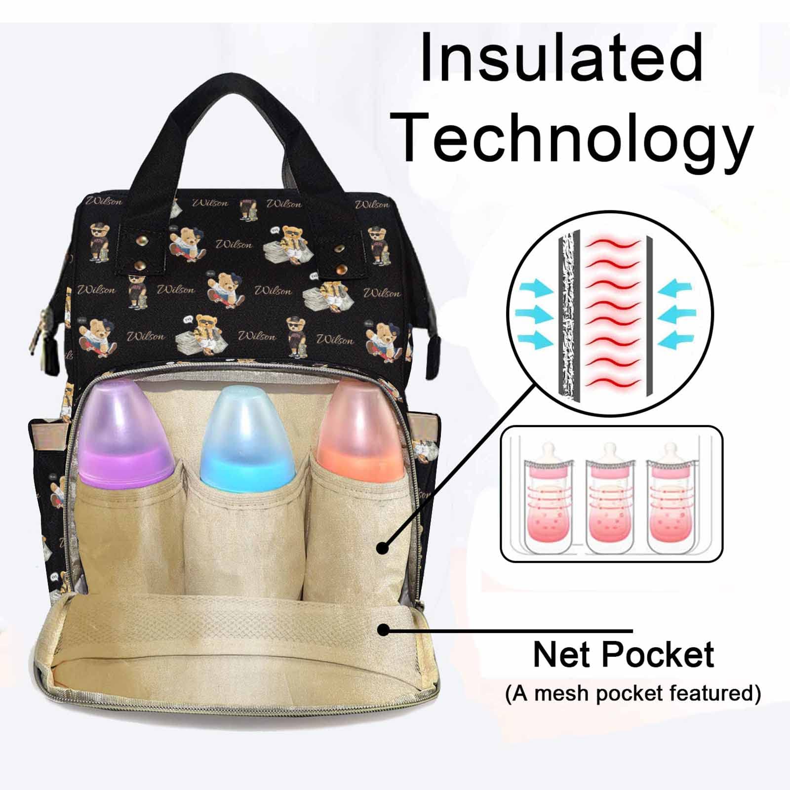 - Q: Can this diaper bag be customized? A: Absolutely! You can personalize the diaper bag by entering your baby boy's or girl's name or any text you wish to display when you click the 'CUSTOMIZE NOW' button.