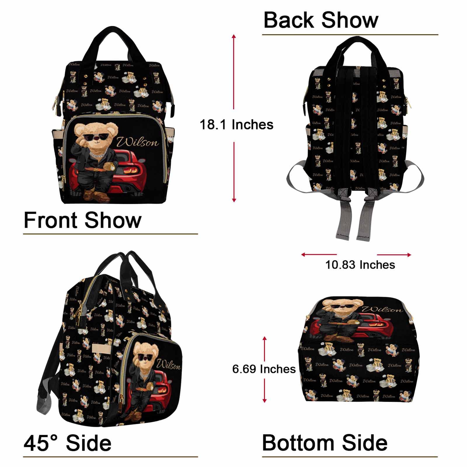 - Q: What is the capacity of the Custom Bear Diaper Bag Backpack? A: The Custom Bear Diaper Bag Backpack features a large-capacity main compartment that is divided into six areas, allowing you to organize all the baby necessities easily.