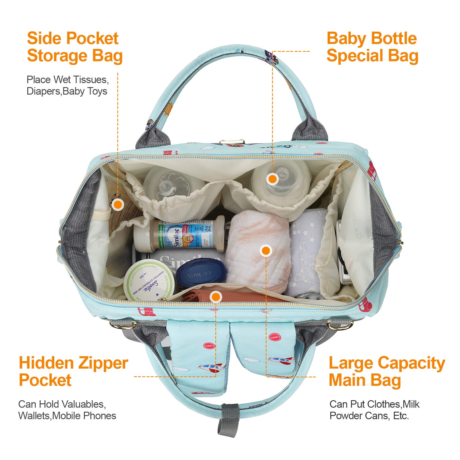 - Q: Can this diaper bag be used as a backpack? A: Yes, this diaper bag can be used as a backpack, handbag, shoulder bag, or crossbody bag, offering multiple carrying options.