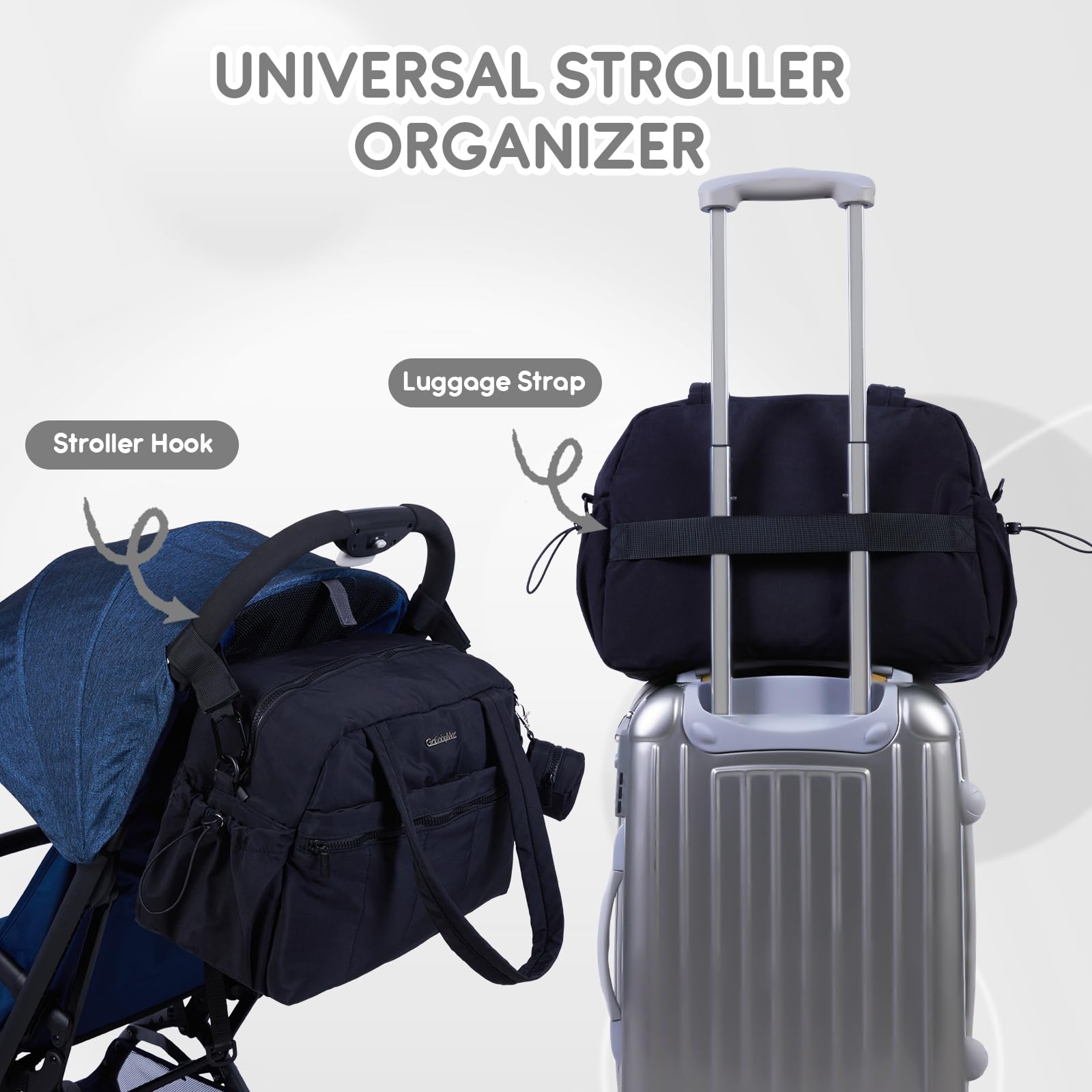 • Q: Can this diaper bag be attached to a stroller? A: Absolutely! The diaper bag comes equipped with stroller straps, making it easy to attach to your stroller for hands-free convenience.