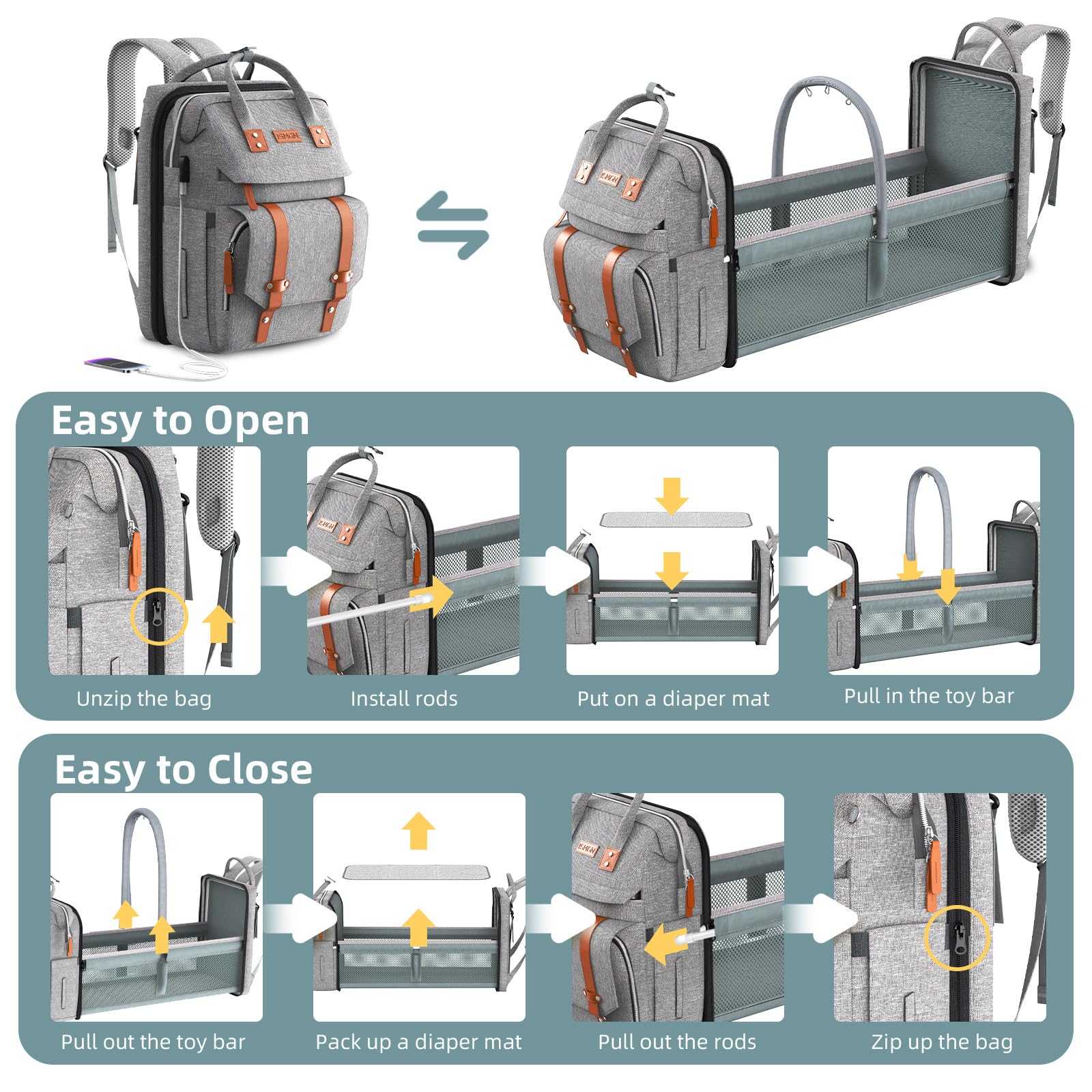 - Q: Can this diaper bag be used as a stroller bag? A: Yes, the ISMGN Diaper Bag Backpack includes built-in stroller straps, allowing it to be easily attached to a stroller.