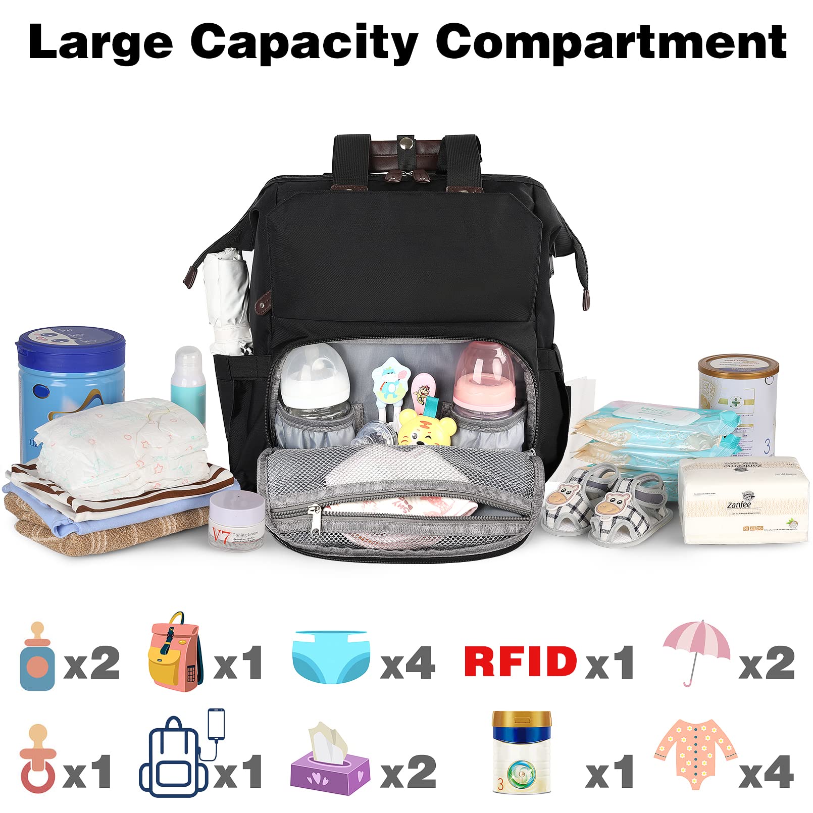- Q: What features help prevent theft? A: The diaper bag includes an RFID pocket that protects your personal information and an anti-theft pocket on the back for storing valuables securely.