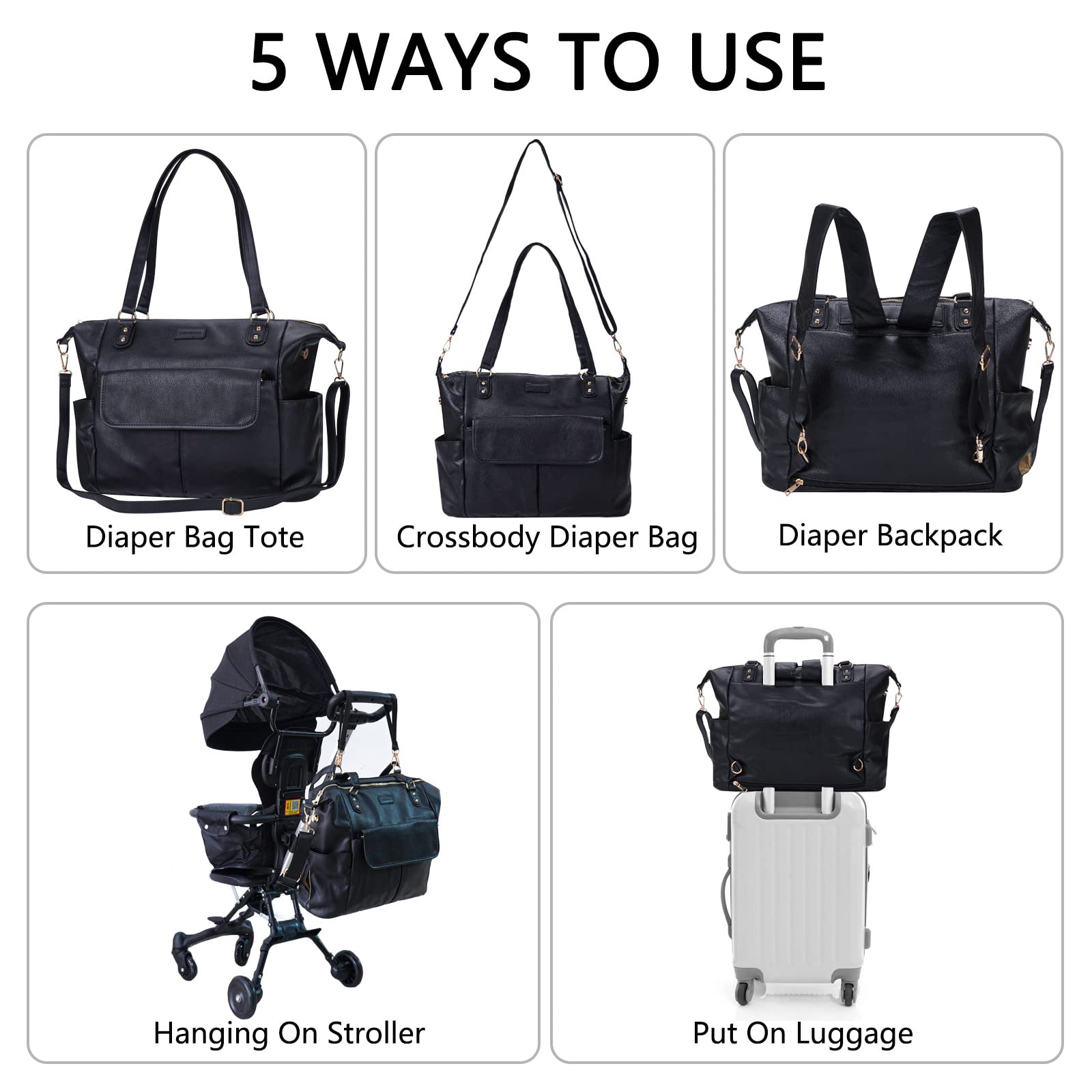 - Q: Can the diaper bag be used as a backpack? A: Yes, the diaper bag can be used as a backpack, crossbody bag, messenger bag, or tote bag, offering versatility for different occasions.