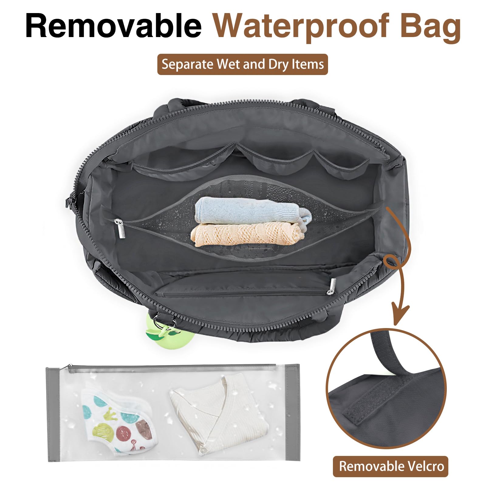 - Q: Is there a way to keep wet and dry items separate in the diaper bag? A: Yes, the diaper bag includes a removable waterproof bag for wet items, allowing for simple cleaning without needing to wash the entire bag.