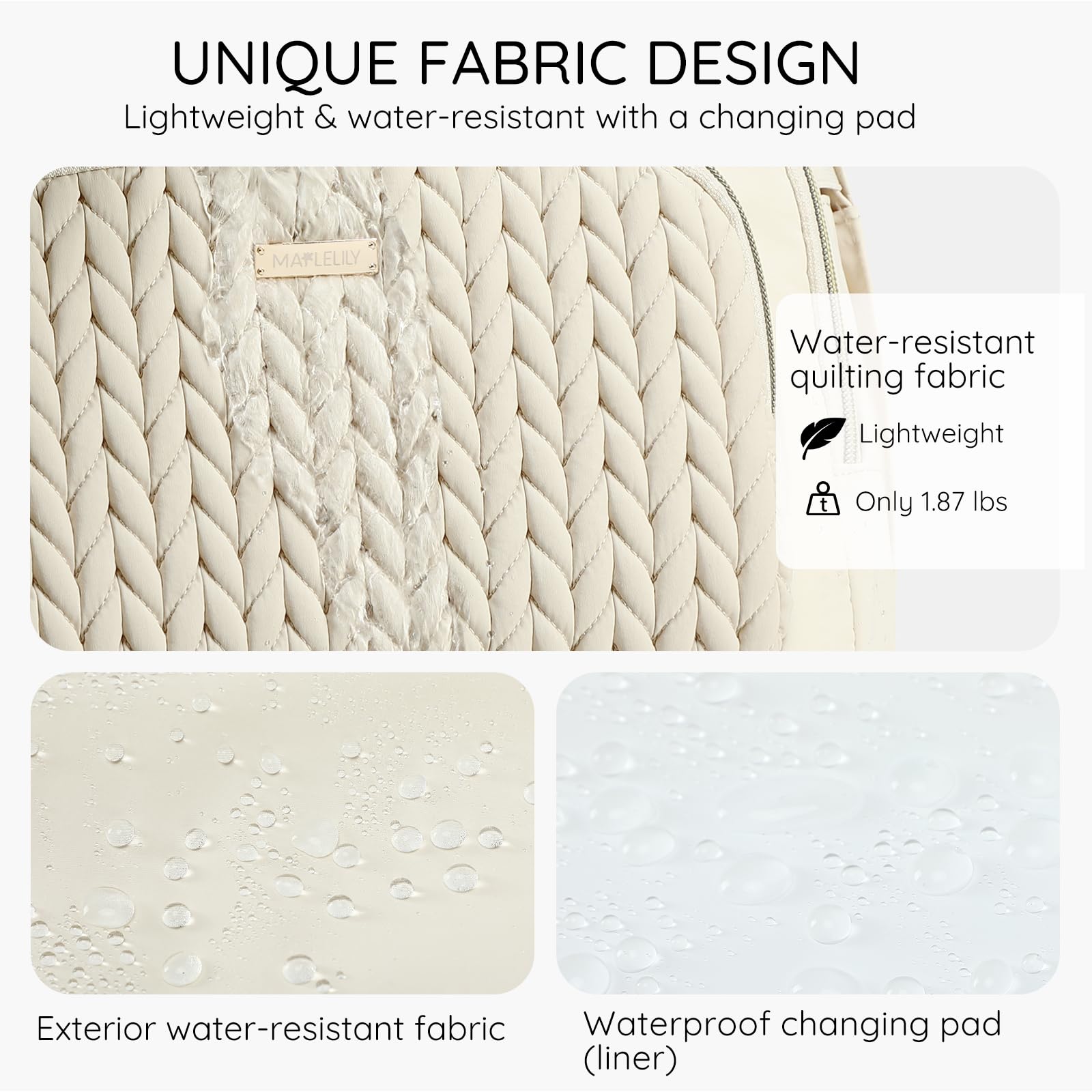 - Q: What materials is the MAPLELILY Diaper Bag Backpack made from? A: The diaper bag is made from water-resistant polyester with a quilted exterior and a soft-lined interior.