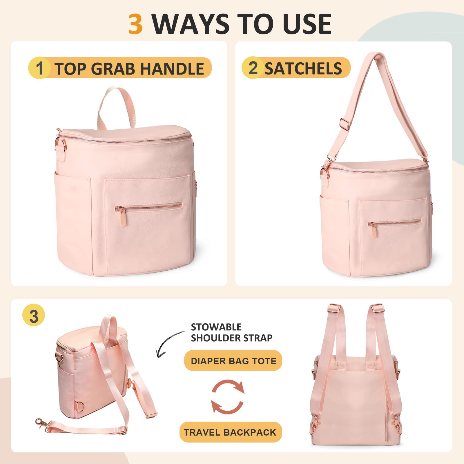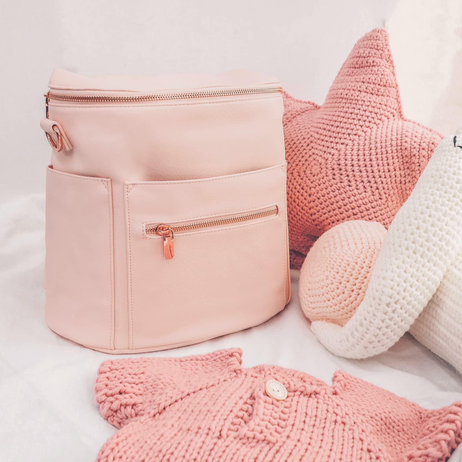 Mini Diaper Bag Leather By Miss Fong,Small Diaper Bag With In Bag Organizer, Insulated Pocket And Shoulder Strap(Pink Rose)