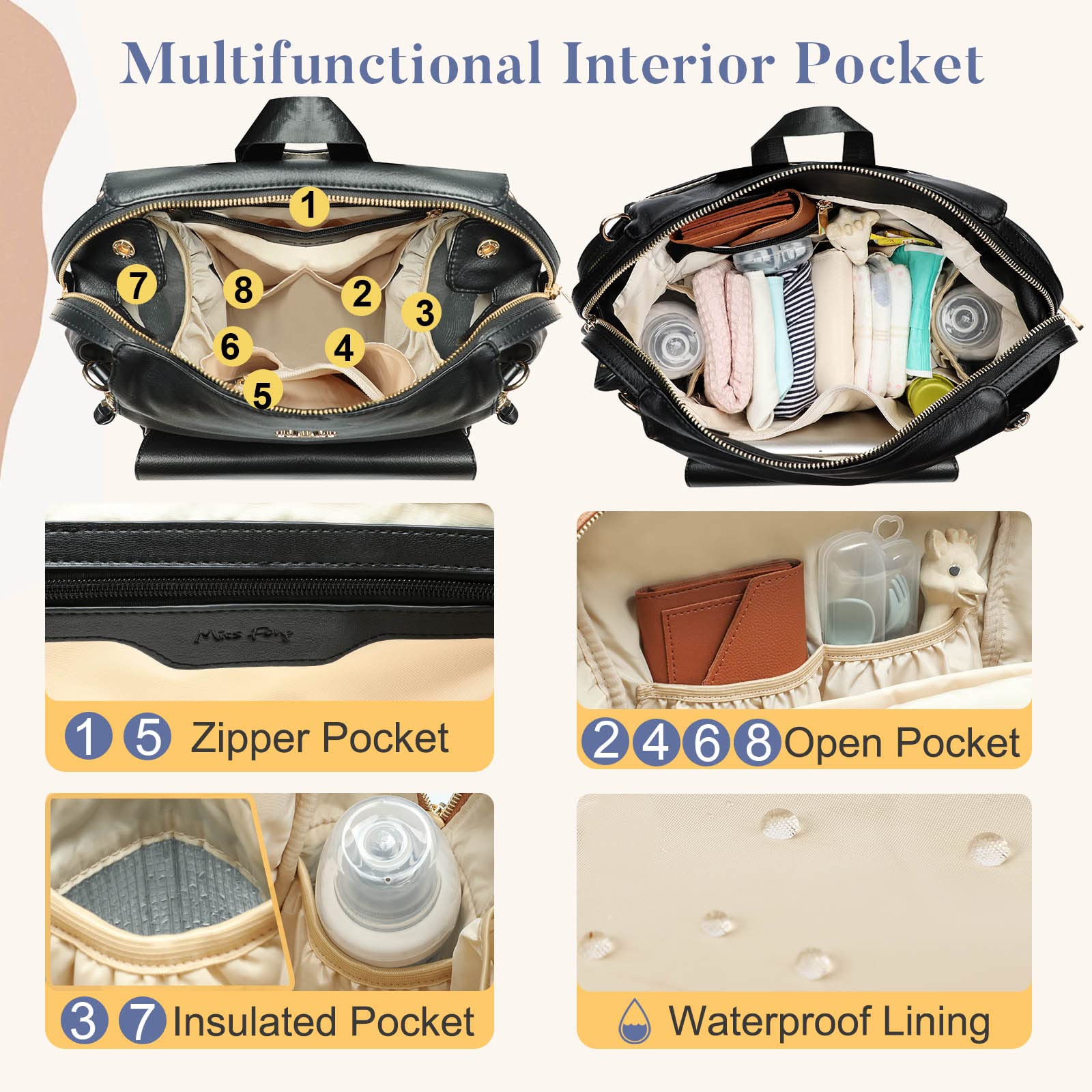 - Q: Are the bottle pockets insulated? A: Yes, the diaper bag includes 4 insulated pockets designed to keep baby bottles warm or cool.