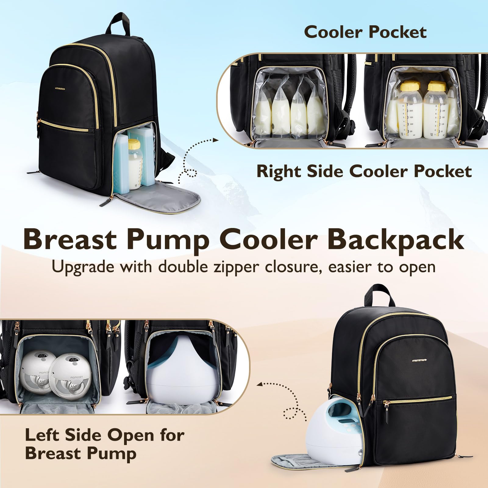 - Q: Does the bag have any special compartments for breast pumps? A: Yes, it includes a side zipper for easy access to the breast pump without removing it from the bag, plus an inner mesh pocket for tissues.