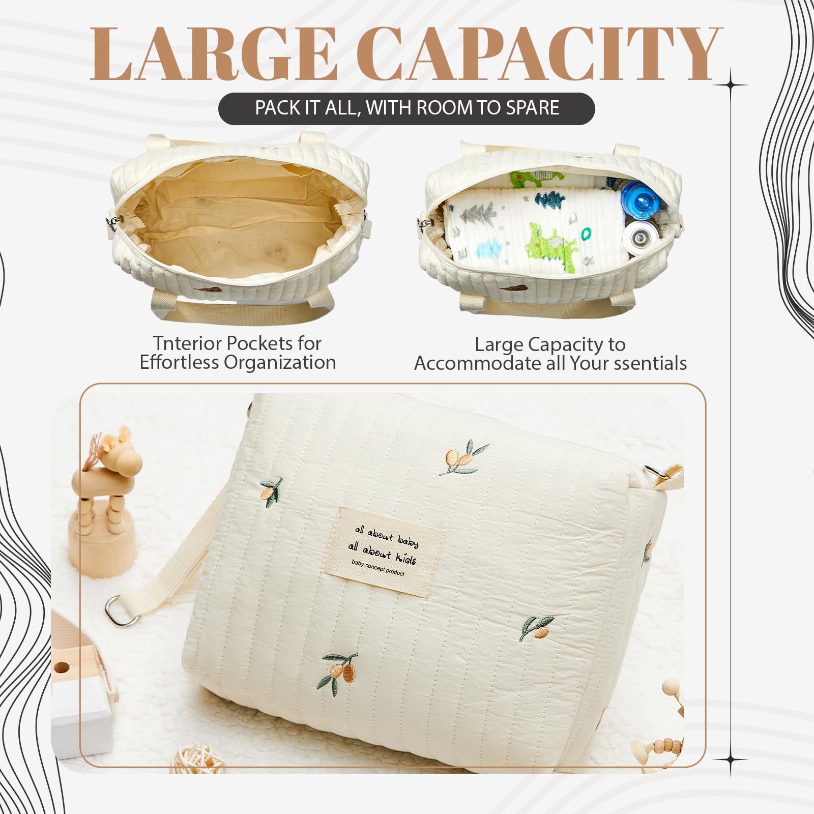 - Q: Can the diaper bags be used for purposes other than carrying diapers? A: Absolutely! The diaper bags are versatile and can also be used as beauty bags, toiletry bags, or daily storage bags.