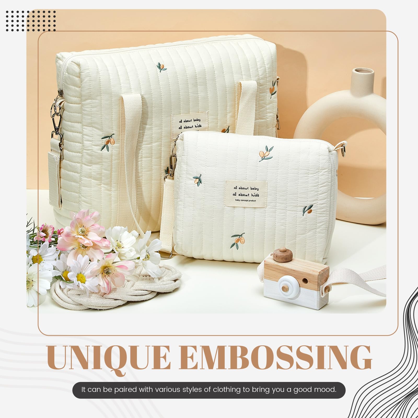 - Q: Is the design of the diaper bag suitable for both moms and dads? A: Yes, the stylish quilted trim and cute olive flower patterns make the diaper bag appealing for both moms and dads.