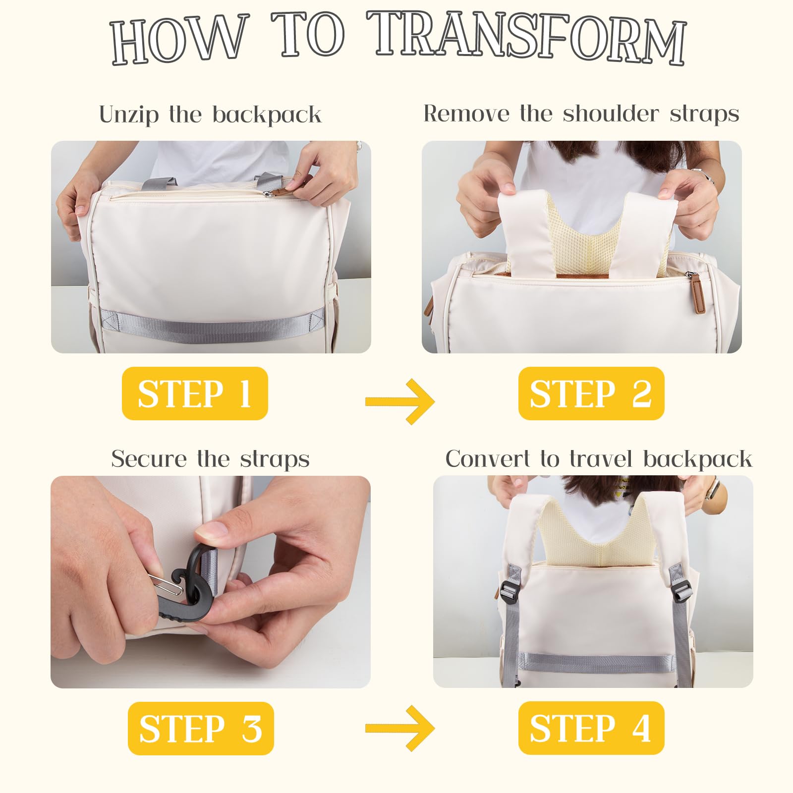 • Q: How does the bag convert into different styles? A: The Pripher diaper bag can be transformed into five different styles: a crossbody bag, shoulder bag, backpack, handbag, and stroller bag, depending on your needs.