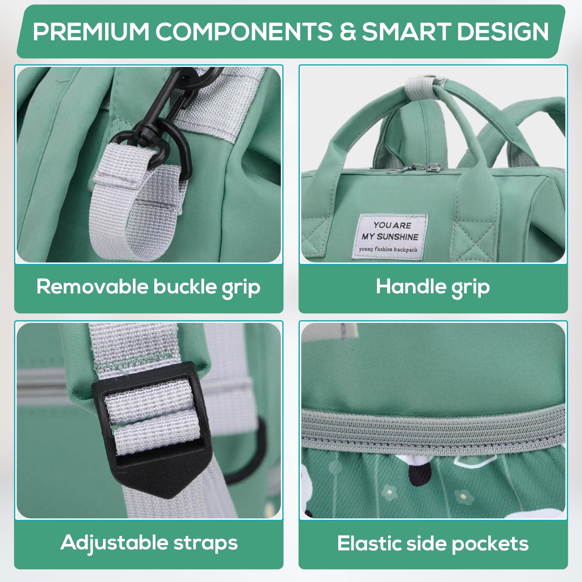- Q: What are the dimensions of the Small Diaper Bag Backpack? A: The dimensions of the Small Diaper Bag Backpack are approximately 14.9 x 10.2 x 7.08 inches.