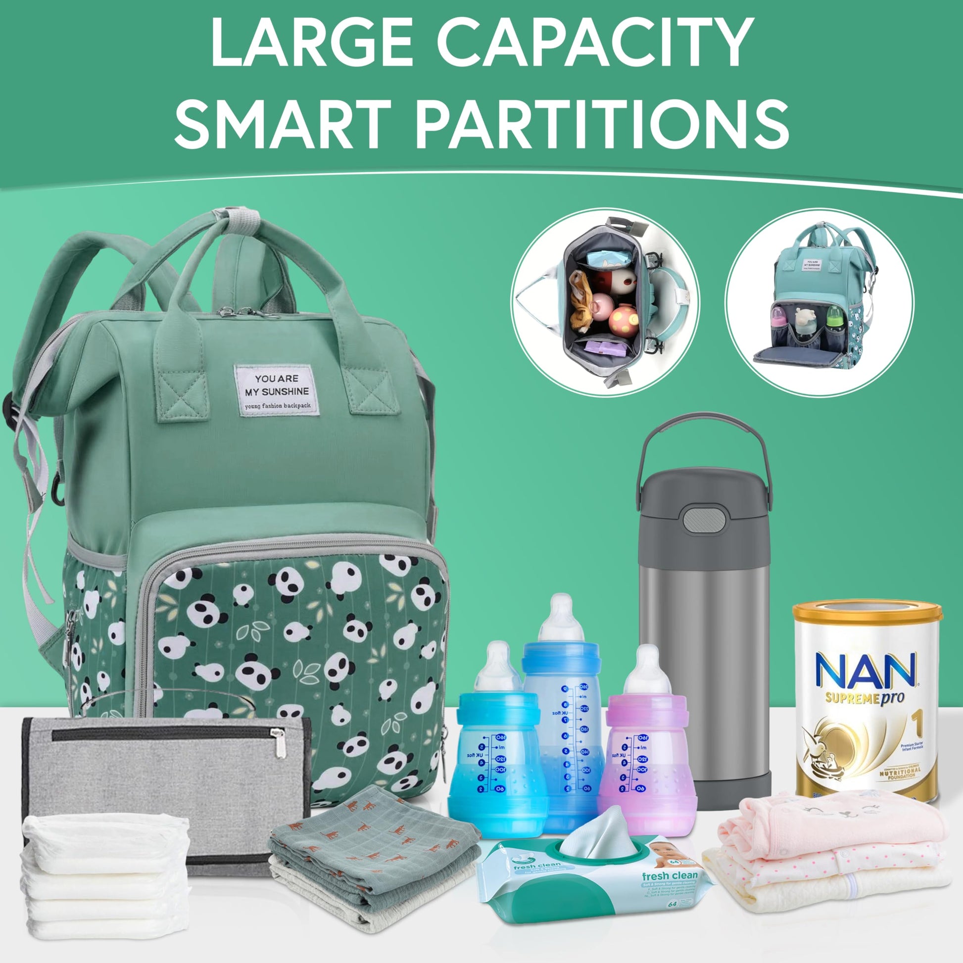 - Q: How many compartments does the diaper bag have? A: The diaper bag features multiple compartments and pockets for organizing diapers, wipes, bottles, and other essentials.