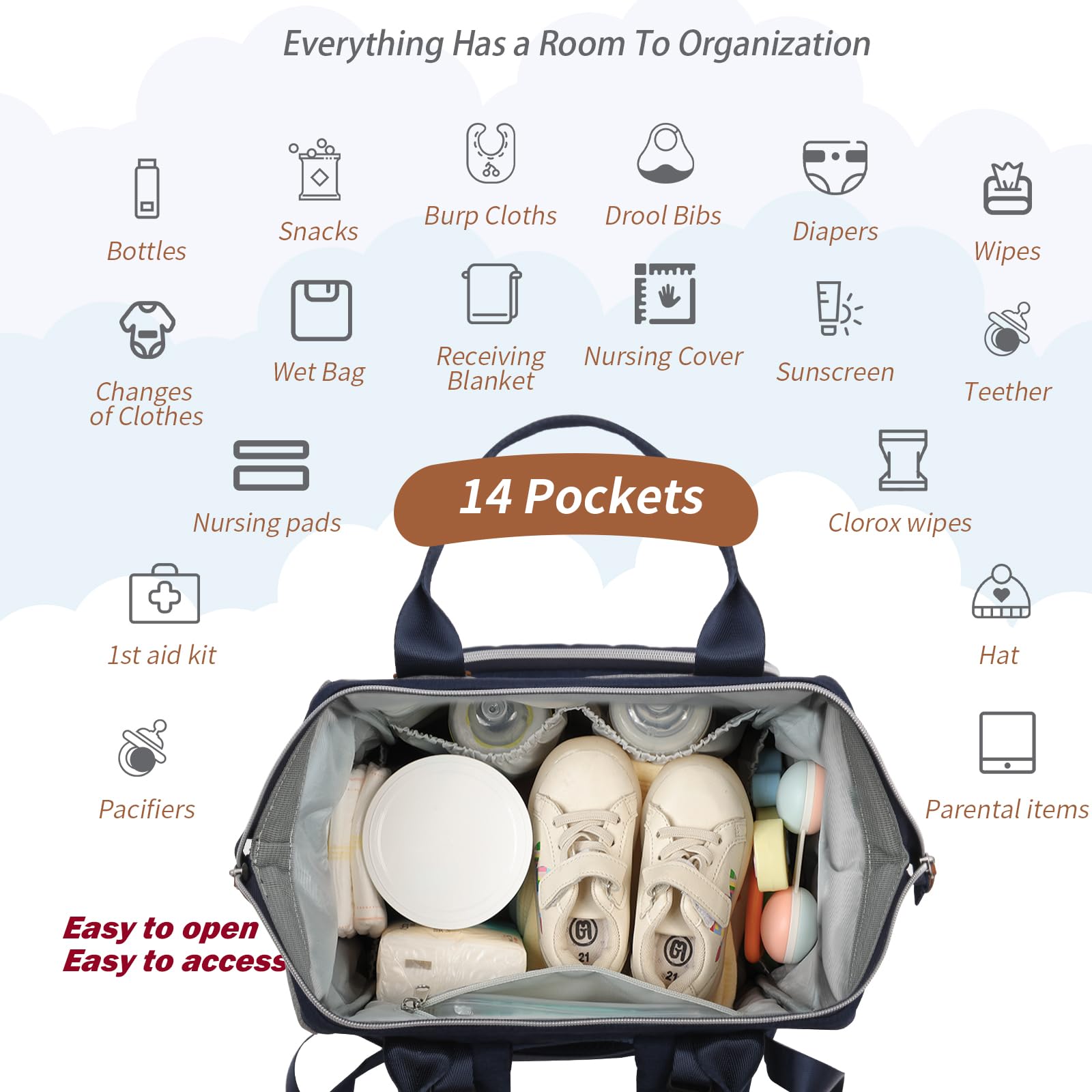 - Q: Is the diaper bag travel-friendly? A: Yes, the diaper bag is designed for travel convenience, easily sliding over luggage handles and attaching to strollers.