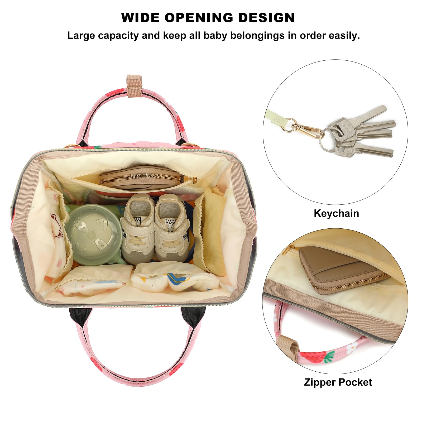 - Q: What is the capacity of the diaper bag? A: The diaper bag is roomy enough to carry all of your baby's accessories, making it suitable for both mom and babysitter.