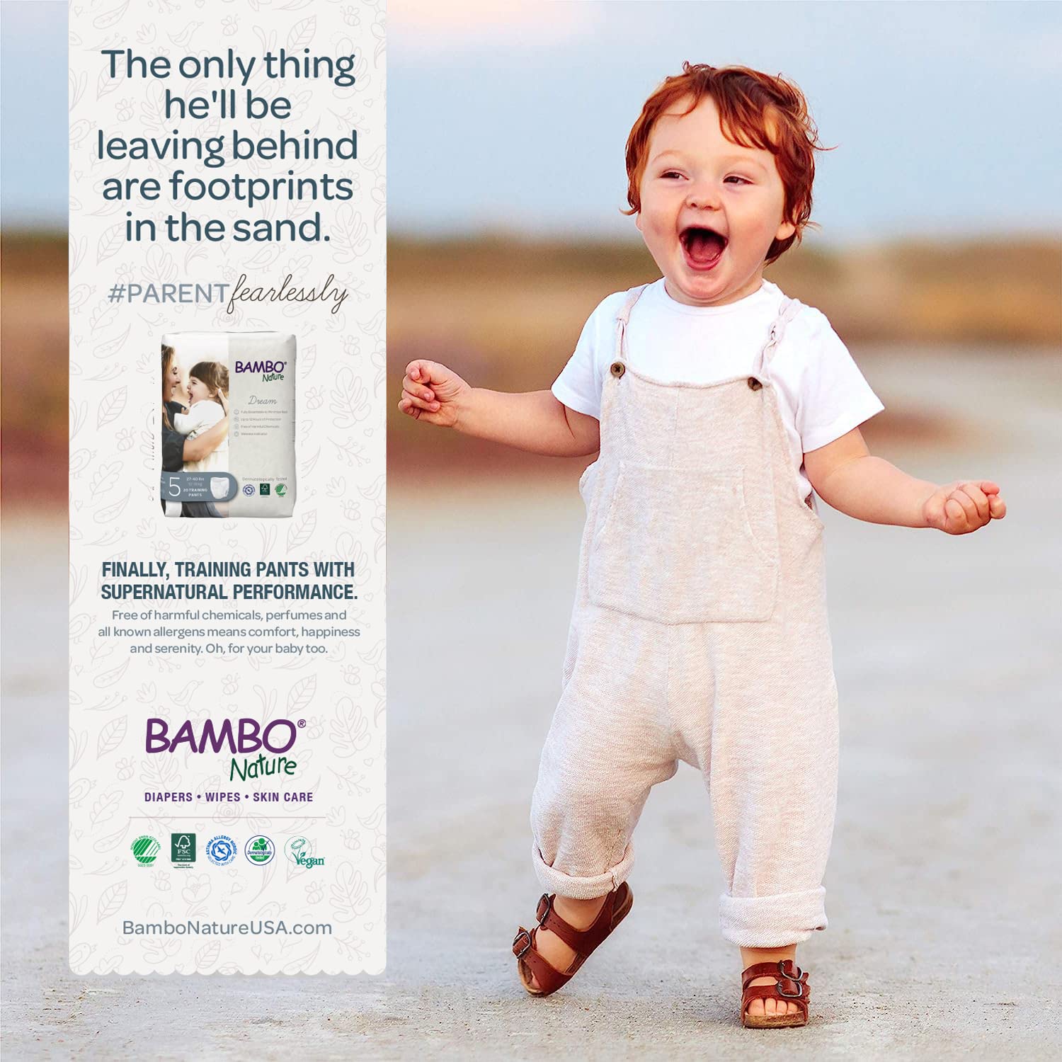 - Q: Are these training pants eco-friendly? A: Yes, Bambo Nature Training Pants are eco-friendly and made from 100% wind power. They are also the first baby diapers certified with the Nordic Swan Ecolabel.