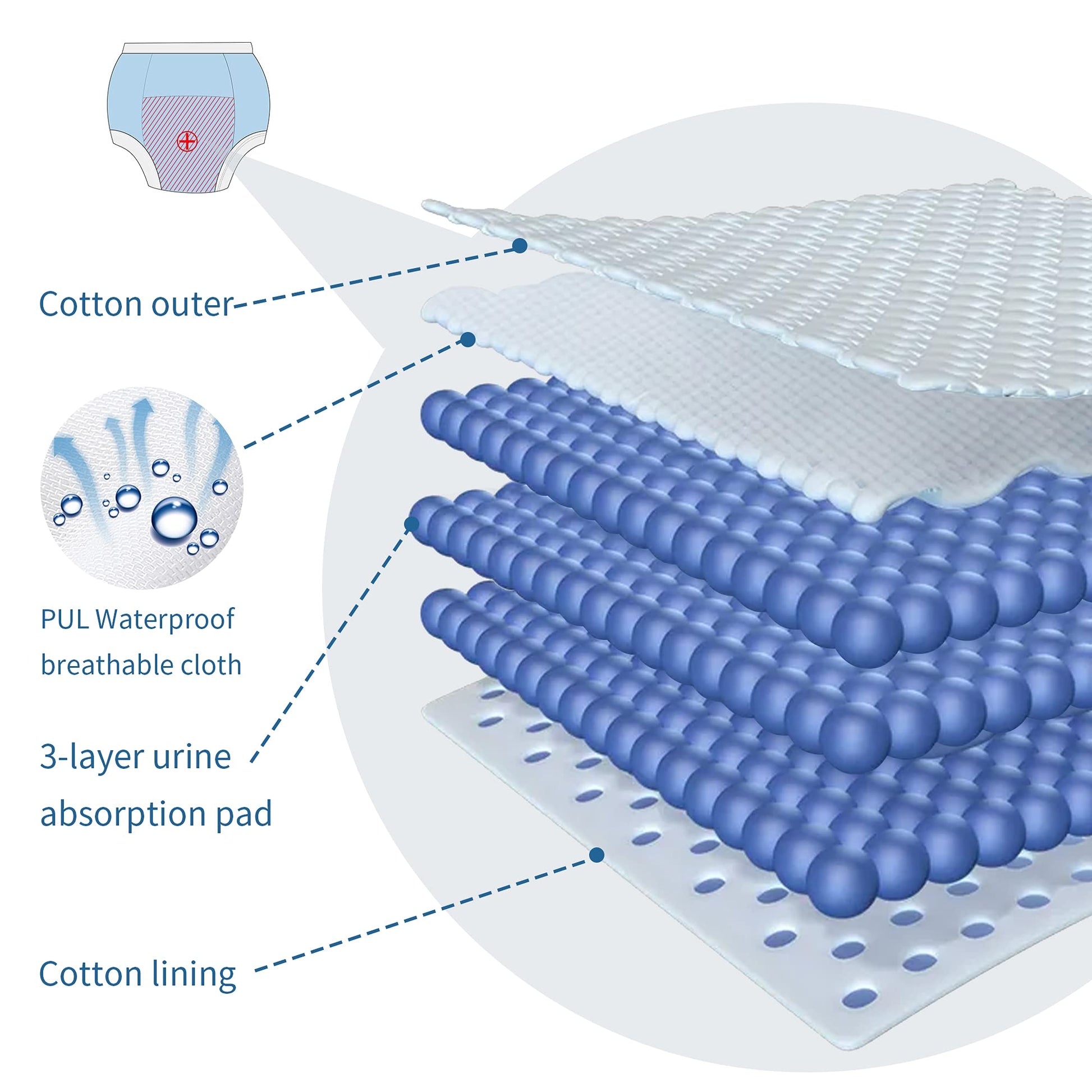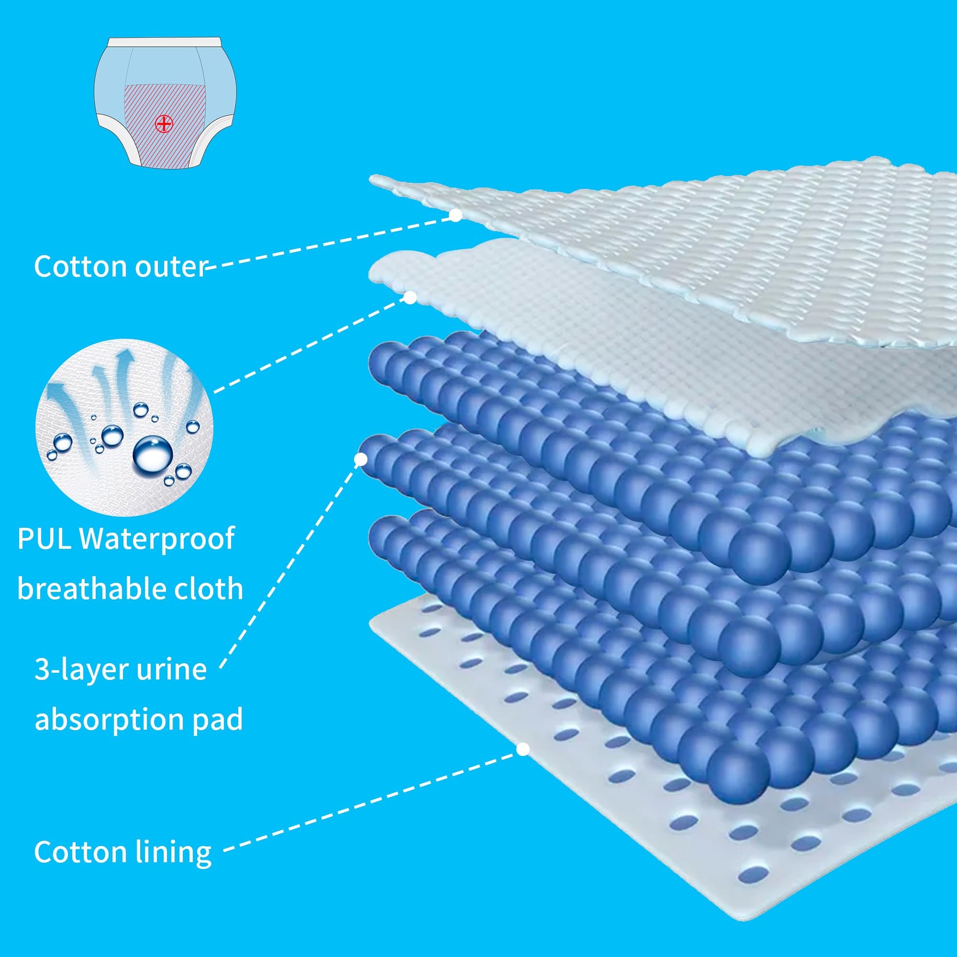 - Q: How do the training pants help with potty training? A: These training pants feature a water-resistant layer and absorbent inner pad that help contain small accidents while also allowing toddlers to feel wet, encouraging them to use the potty.