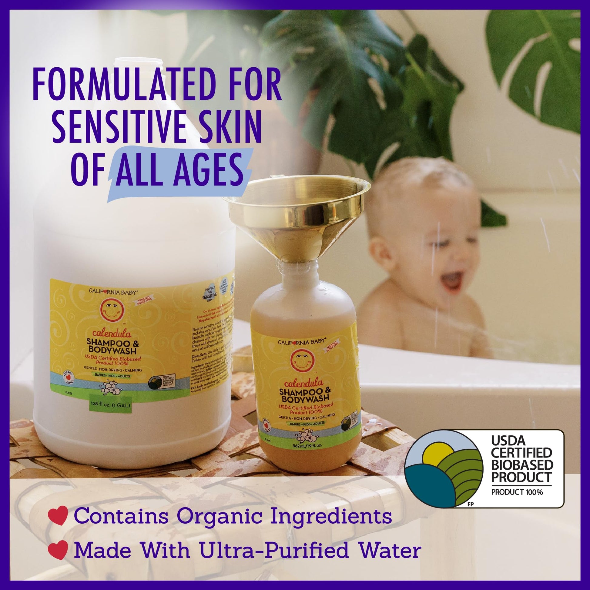 - Q: How do you use California Baby Calendula Shampoo and Body Wash? A: You can use it as a 2-in-1 body wash and shampoo for cleaning hair, face, body, and sensitive areas during bath time.