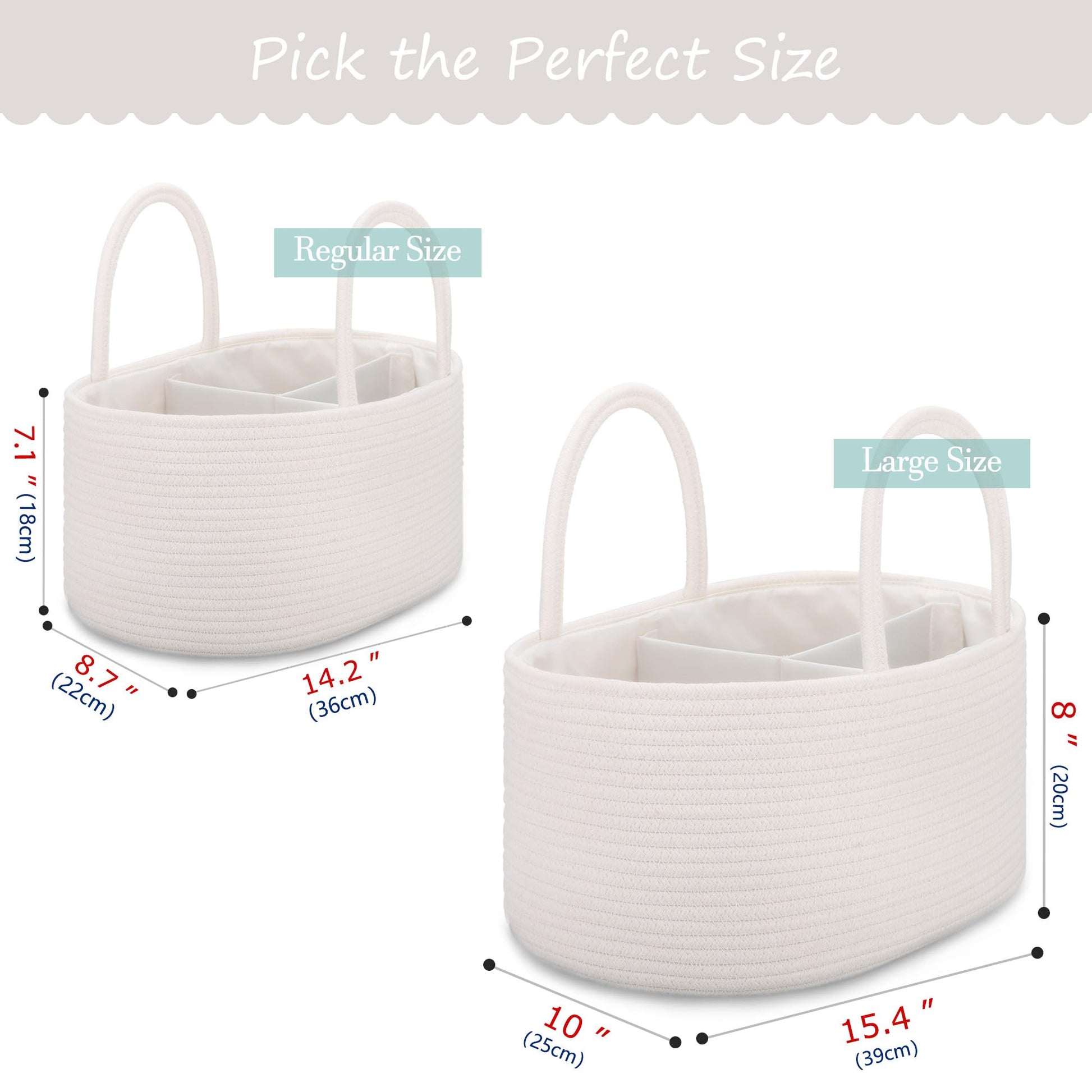 - Q: How do I clean the cotton diaper caddy? A: The caddy can be spot cleaned with a damp cloth. Avoid machine washing to maintain its shape and quality.