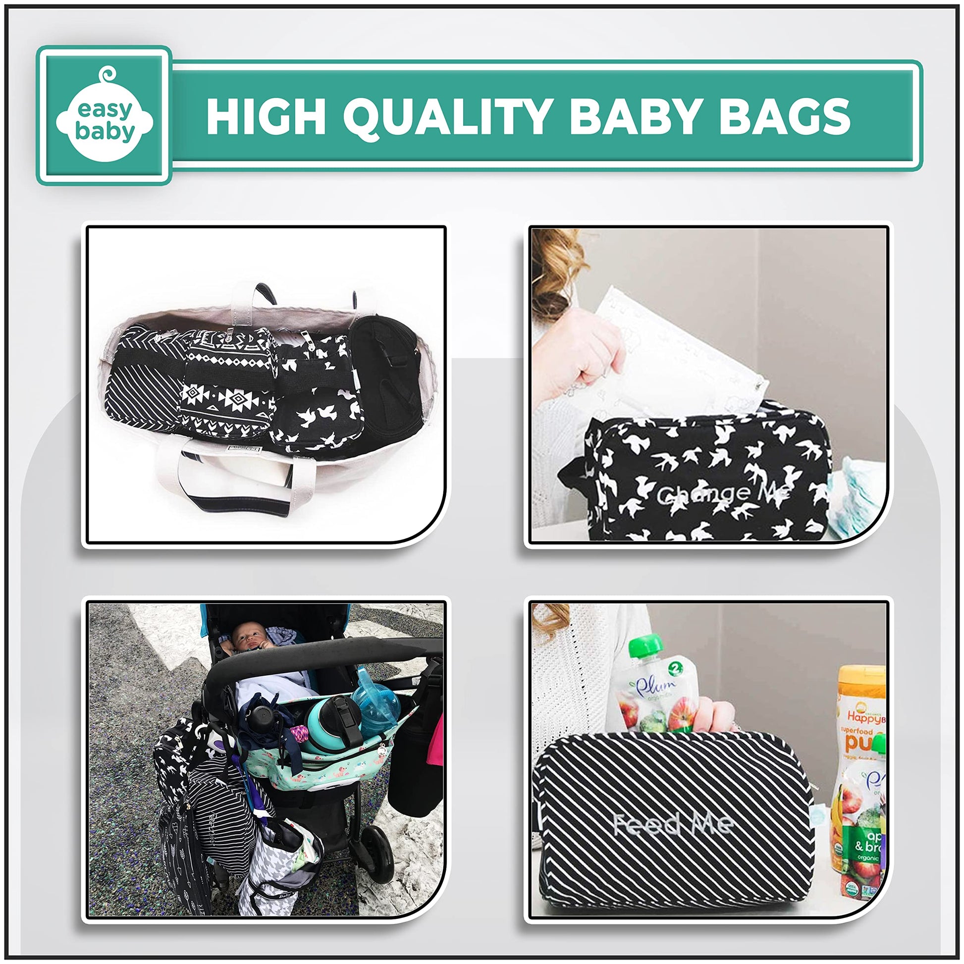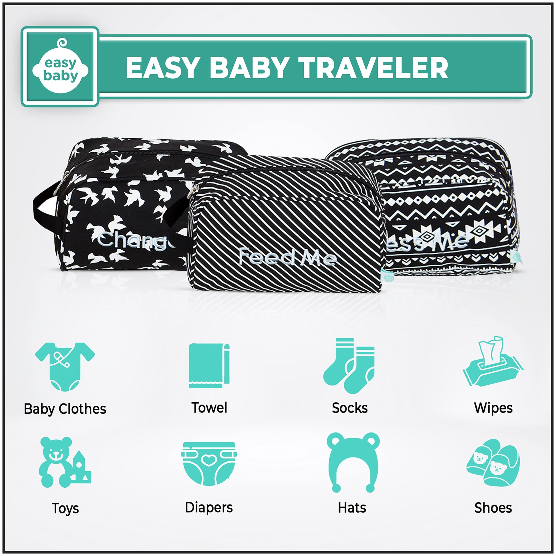 - Q: What is included in the Easy Baby diaper organizer set? A: The Easy Baby diaper organizer set includes eight pouches designed for various needs such as changing, feeding, and dressing your baby.