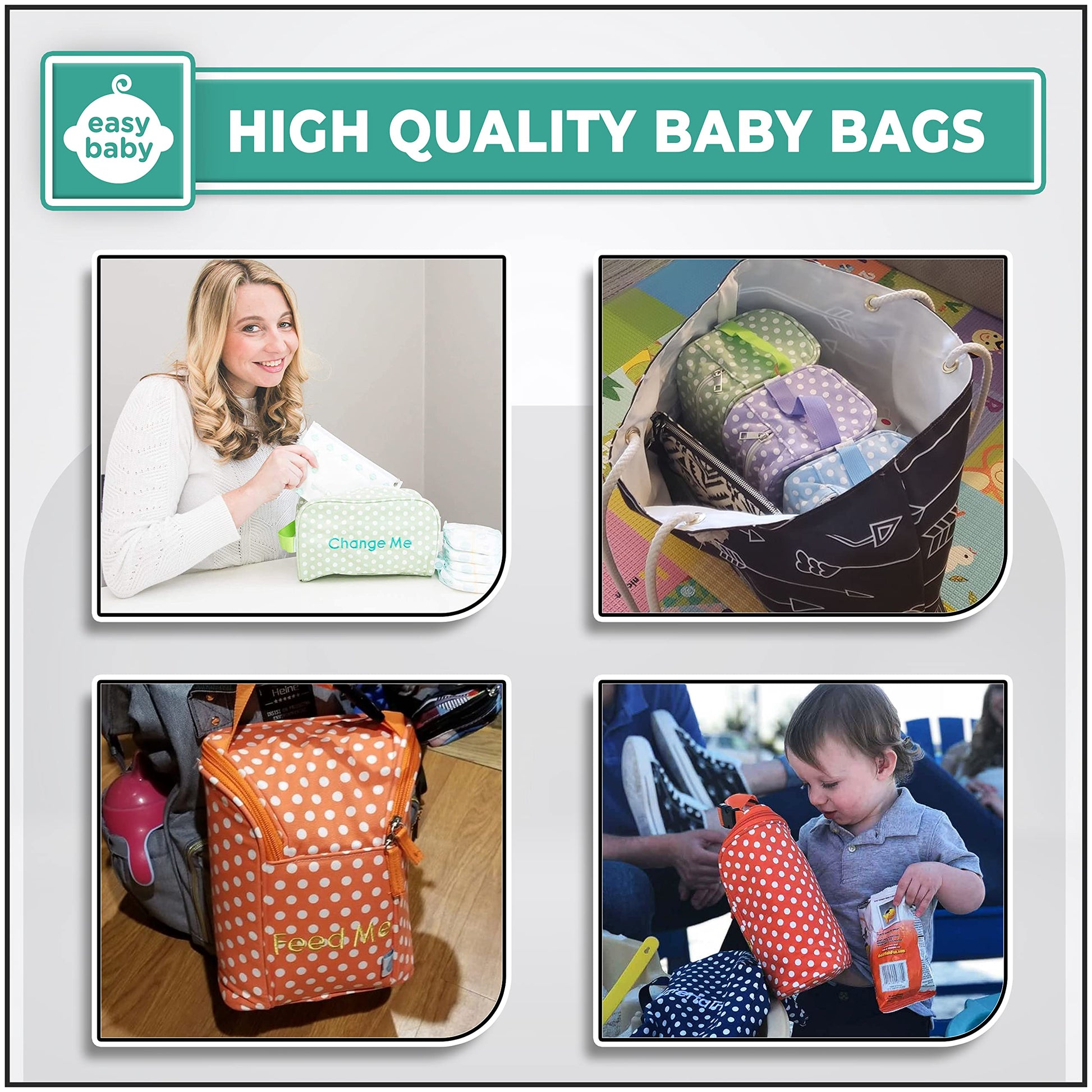 - Q: What is included in the Easy Baby organizer pouches? A: The Easy Baby organizer pouches include eight pouches designed for various functions such as changing, feeding, dressing, and cleaning your baby.